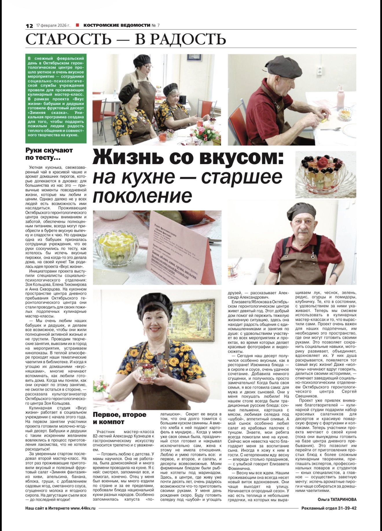 Вот и долгожданный вторник, и с ним и не менее долгожданный выпуск еженедельника "Костромские ведомости" со статьёй Ольги Татариновой о нашем открытом занятии кулинарной студии "Вкус жизни".