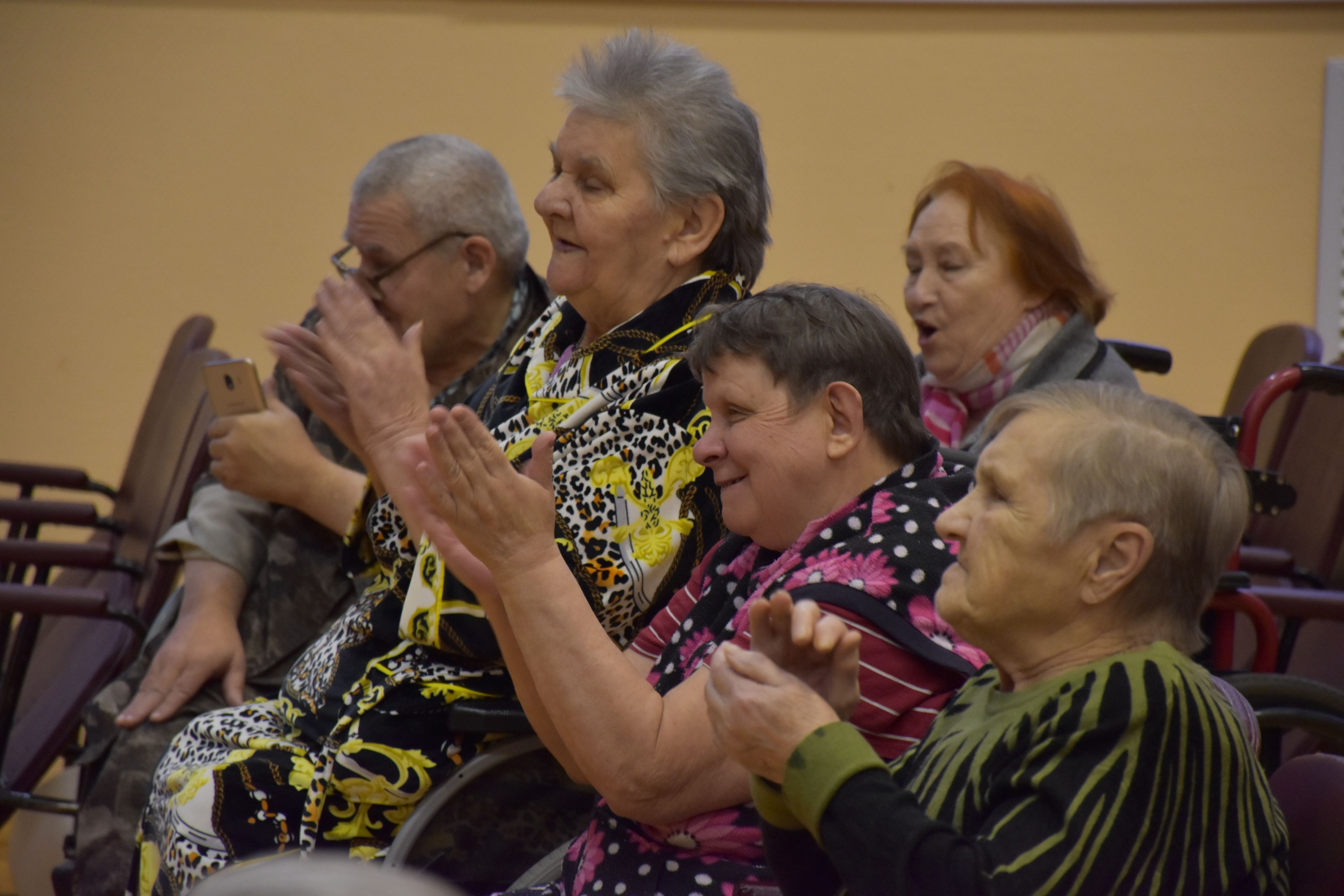 Они весело и виртуозно играли, пели популярные, любимые нашими слушателями песни и задорные частушки, заводя, что называется, публику. И у них это очень здорово получалось! Зал не просто аплодировал, он всей душой был вместе с музыкантами! А после концерта благодарные зрители искренне благодарили ребят- за подаренные минуты радости и молодости! Гармонь - это один из любимых инструментов наших проживающих. Не случайно гармонисты получили коллективное приглашение приходить почаще.