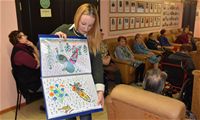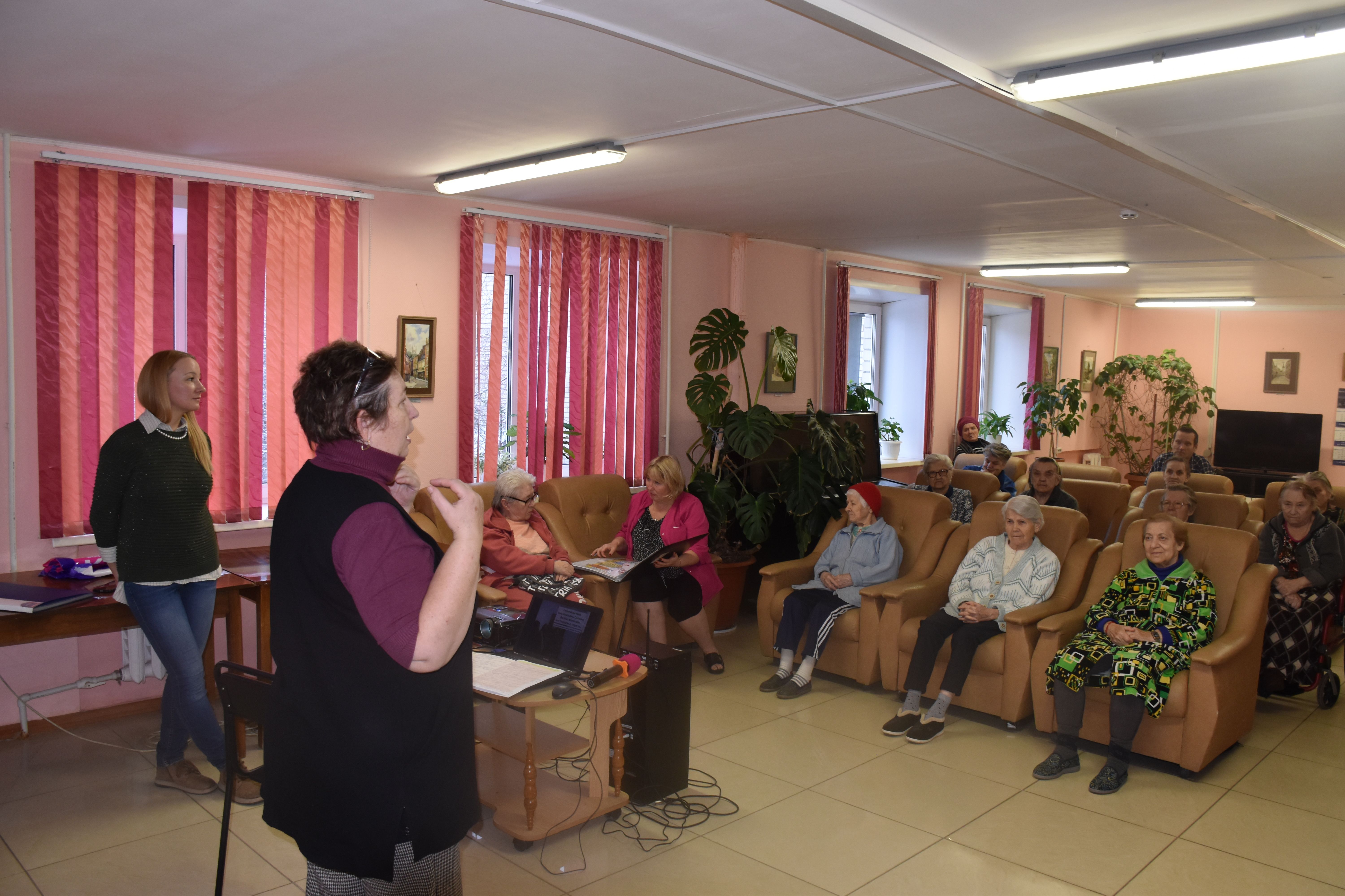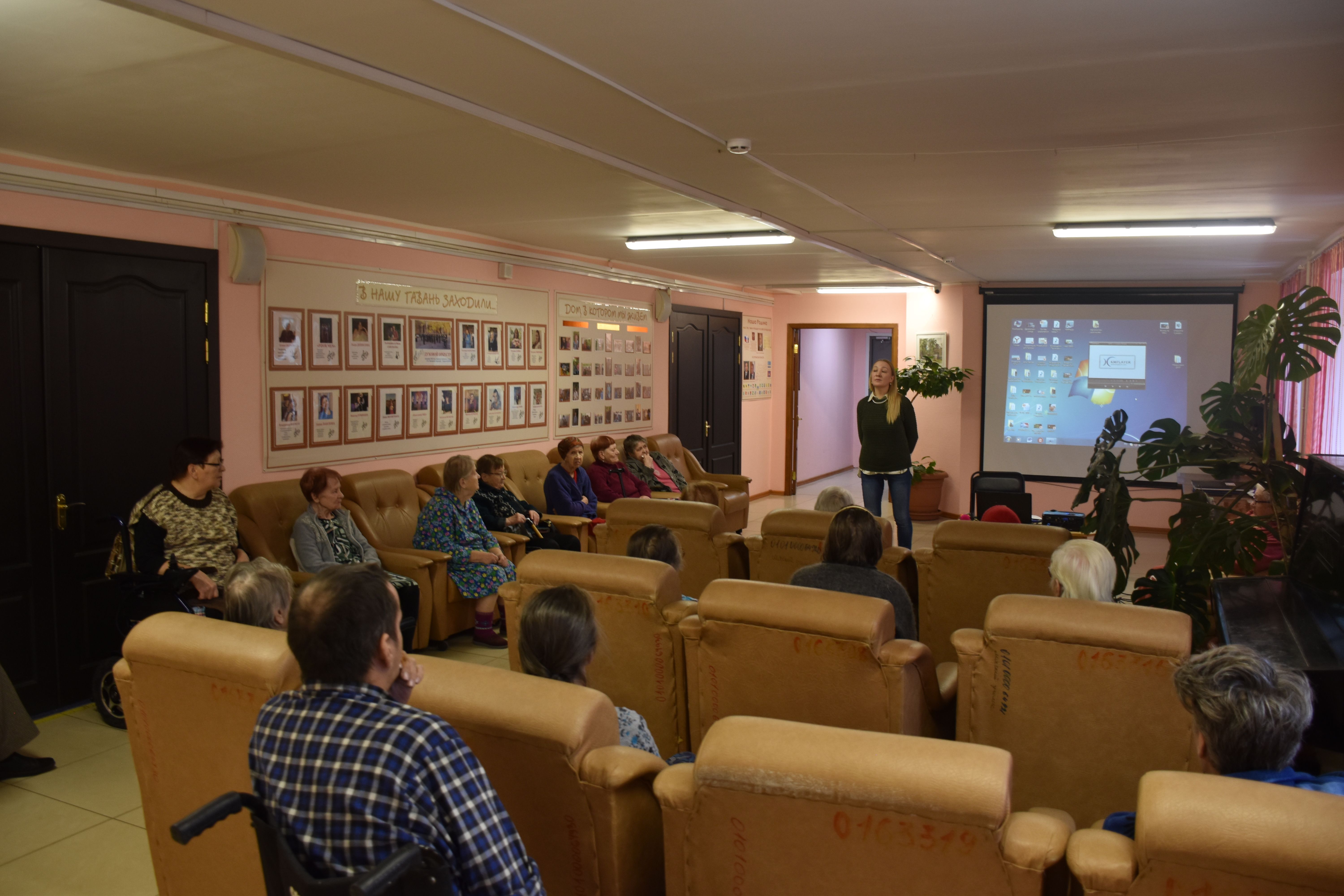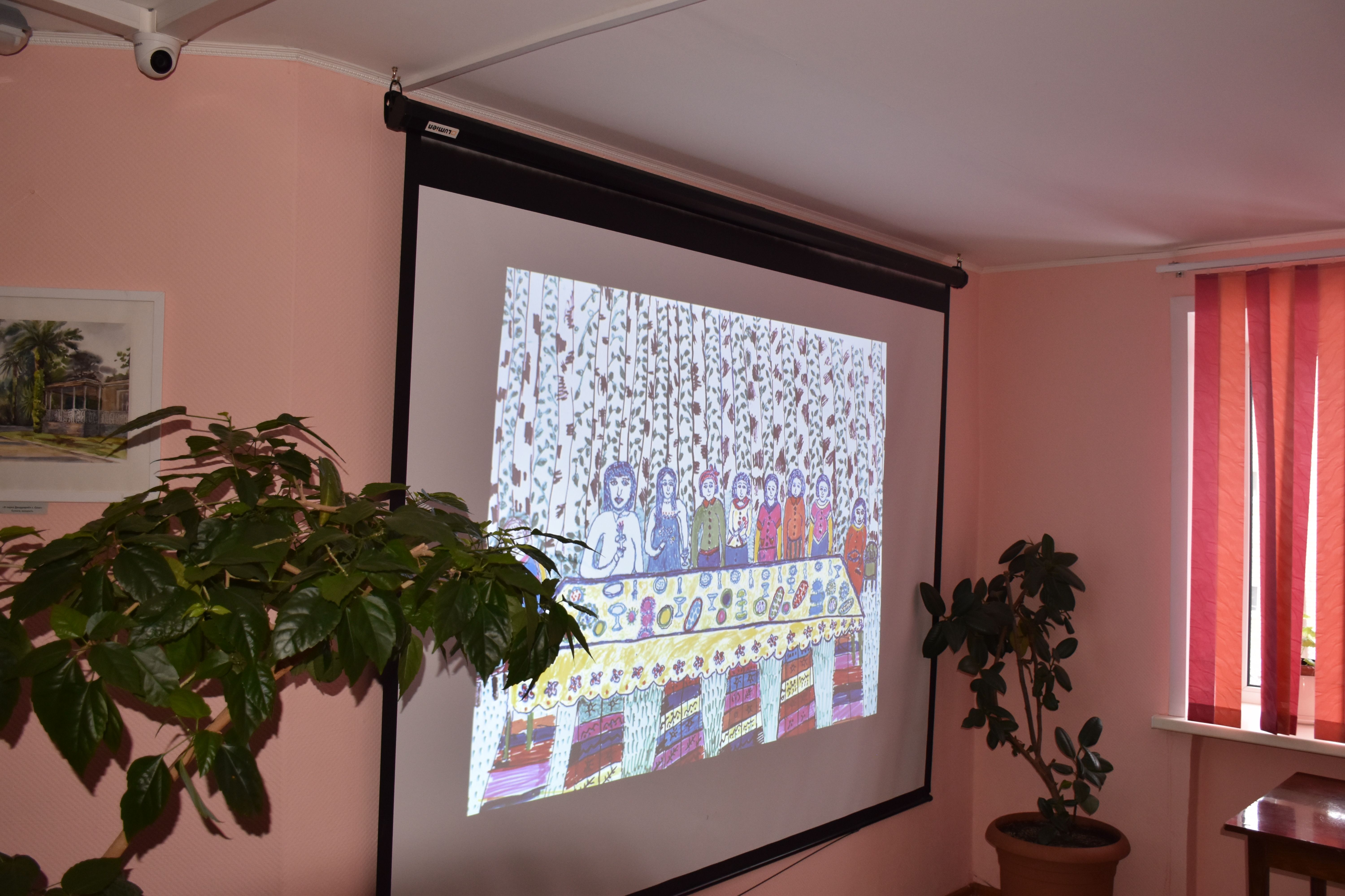 Все получилось так, как, наверно, и должно было получиться, не иначе. В День художника разговор в театральном фойе Октябрьского геронтологического центра зашёл о самобытной костромской художнице Анне Васильевне Суворовой, которая взяла в руки фломастеры в 86 лет, уже будучи прикованной к постели. И за два года своего активного долголетия она оставила потомкам 300 своих рисунков! Юлия не только интересно рассказала о жизни этой удивительной женщины, но и показала собравшимся видеосюжет об открытии выставки её работ "Весёлые фломастеры или Лекарство от старости", а также альбомы с самими работами, что вызвало большой интерес аудитории. Ведь пример Анны Васильевны, сумевшей наполнить свою старость увлекательным занятием, очень поучителен. Главное - не сдаваться, не опускать руки, широко открытыми глазами смотреть на мир и стараться сделать его вокруг себя хоть чуточку радостнее и ярче! Огромное спасибо сотрудниками Центра русского искусства во главе с его директором Верой Павловной Прямиковой. Ждём новых визитов сотрудников к нам в центр и новых приглашений в гости на такие интересные выставки!