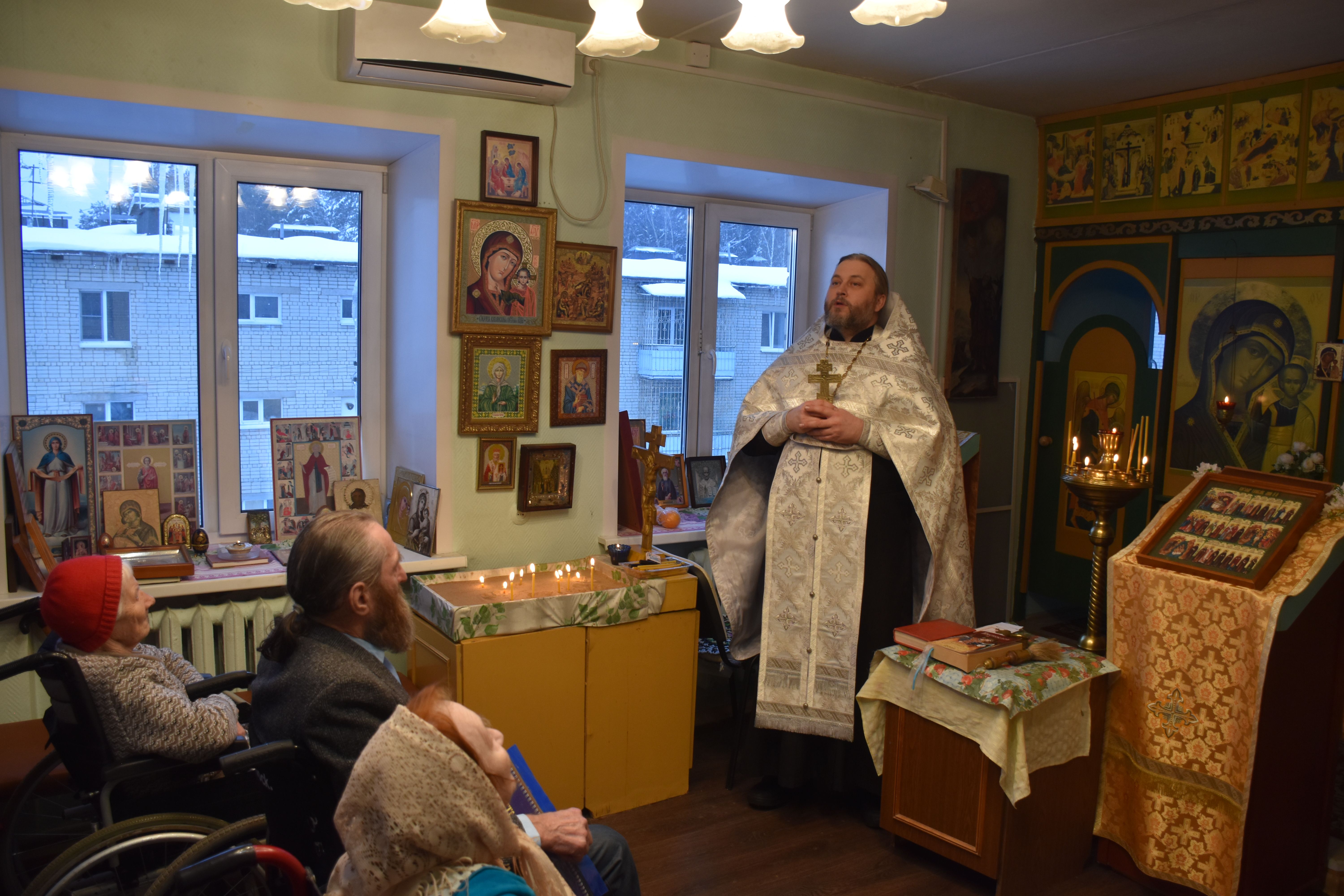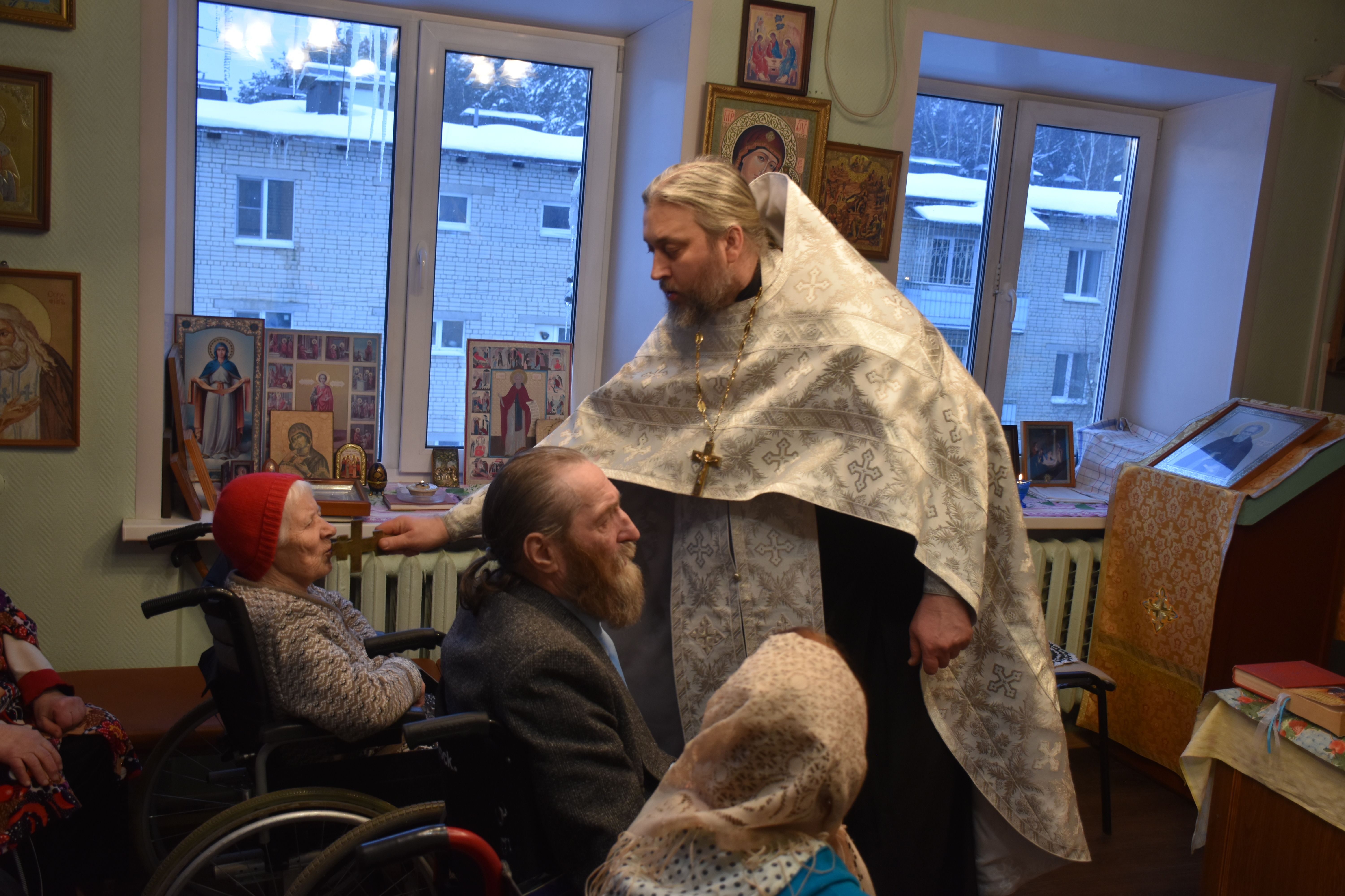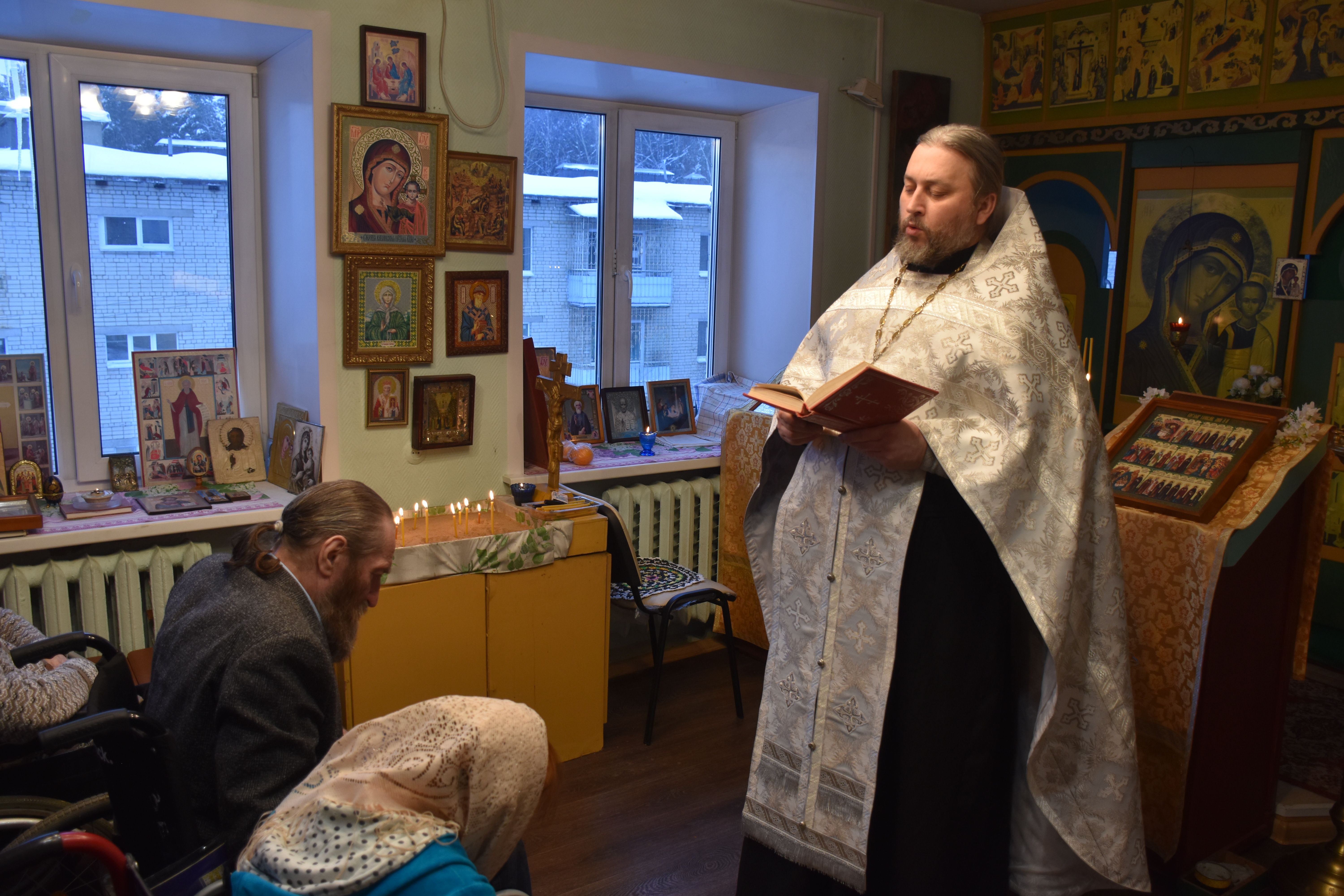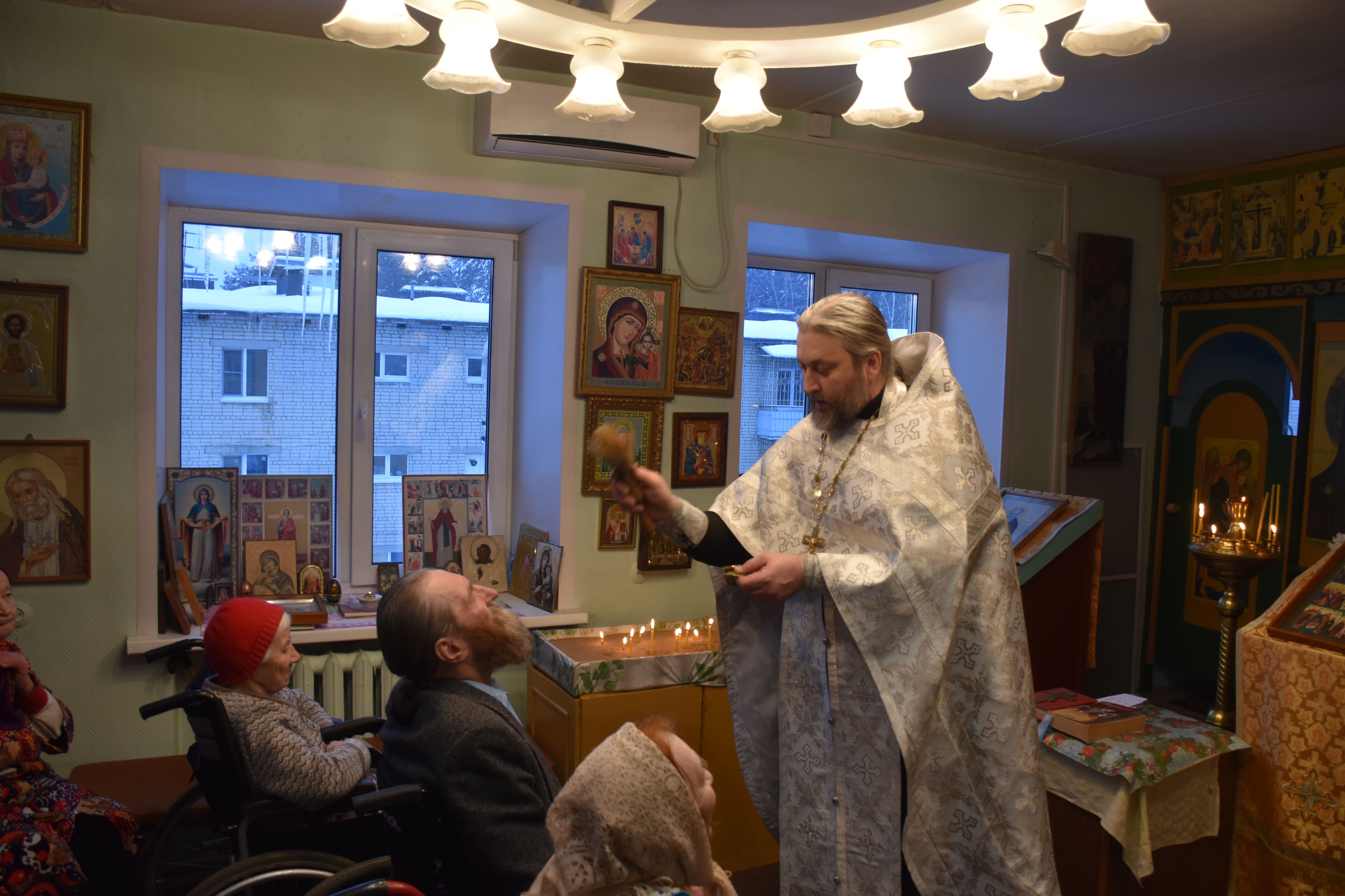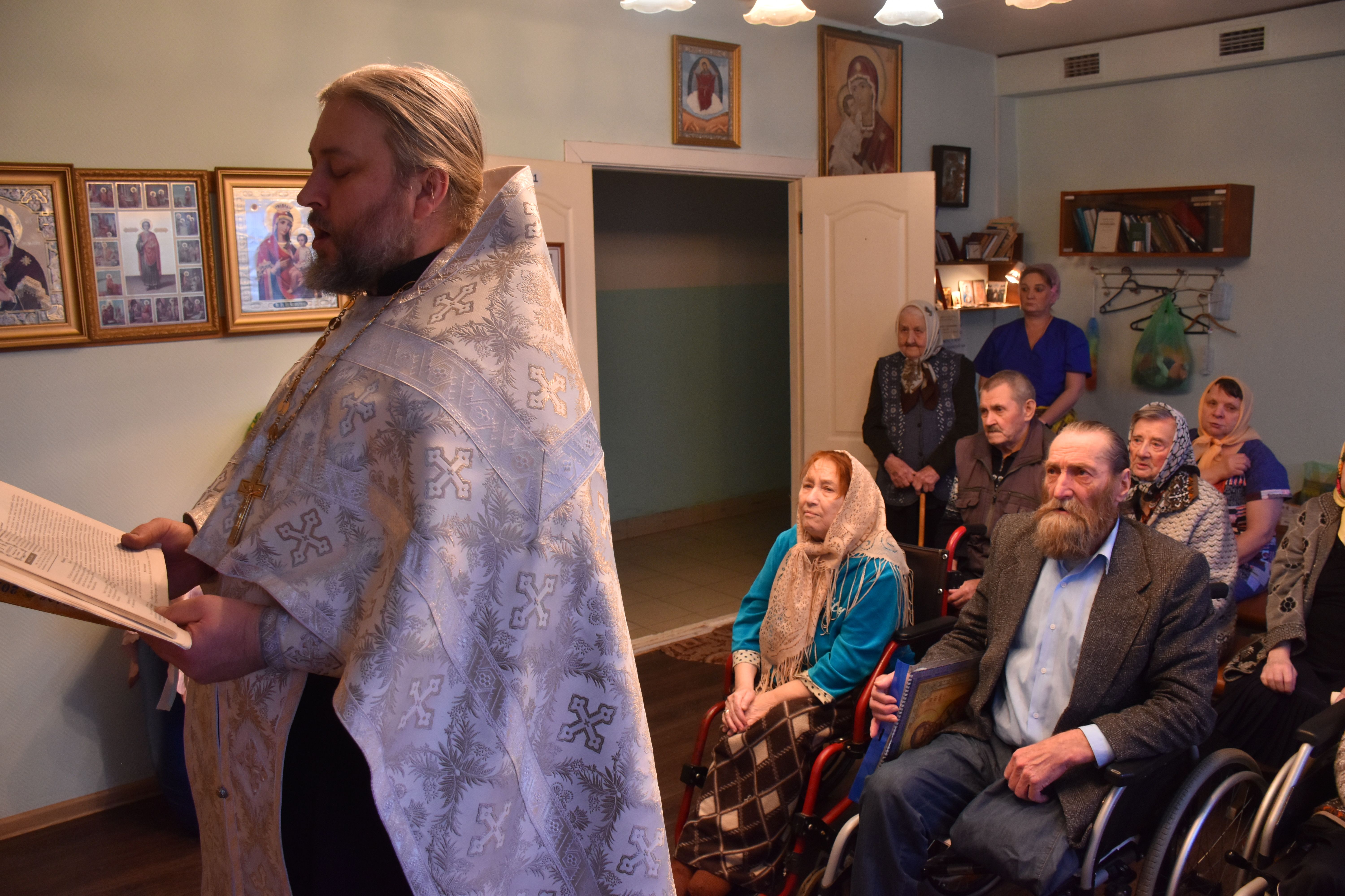 Этим двум событиям и был посвящён сегодняшний Молебен в Храме в честь Святого Преподобного Сергия Радонежского Октябрьского геронтологического центра, отслужил который вместе с прихожанами настоятель храма отец Алексий Дронов.