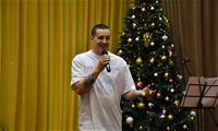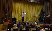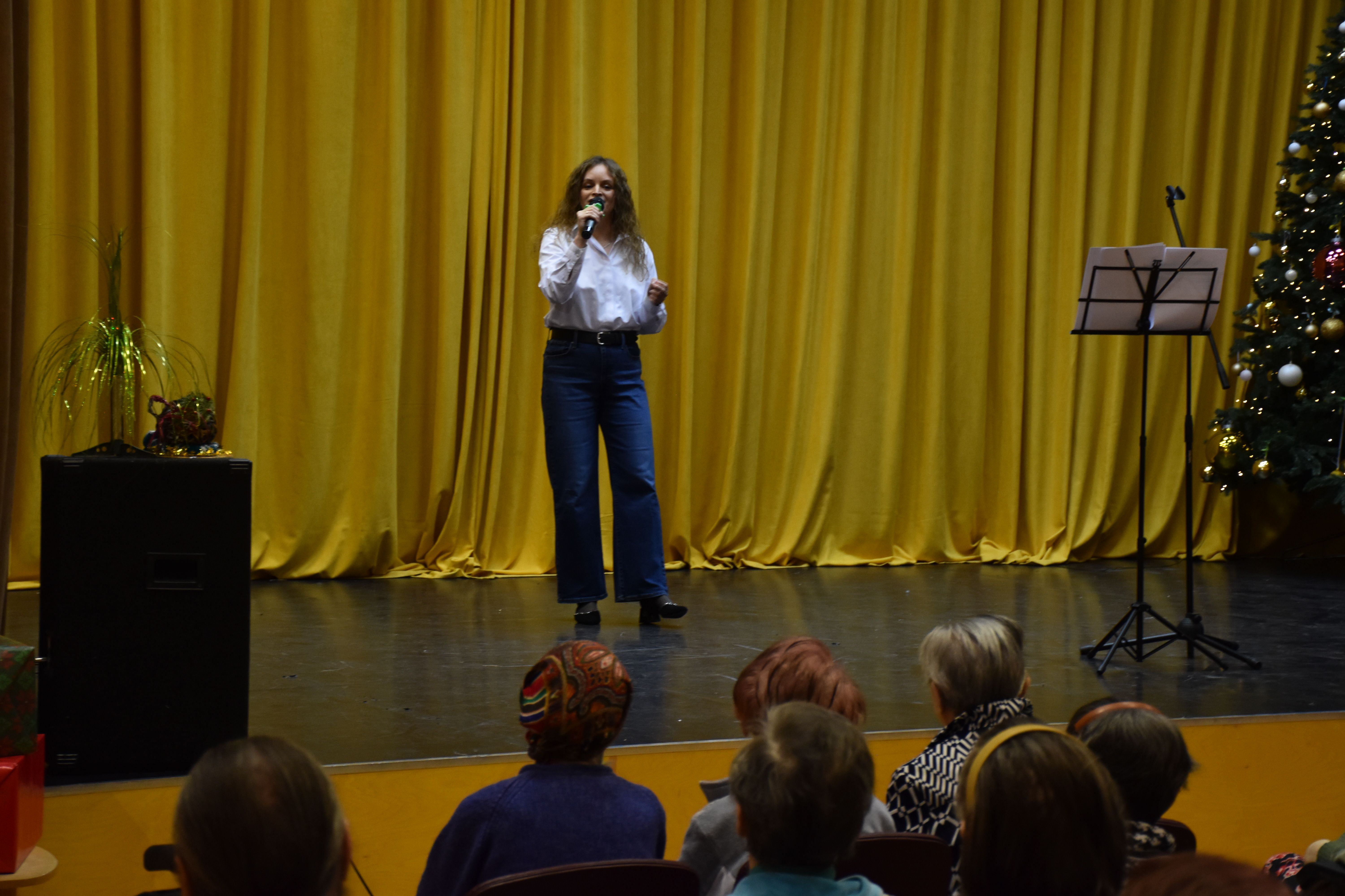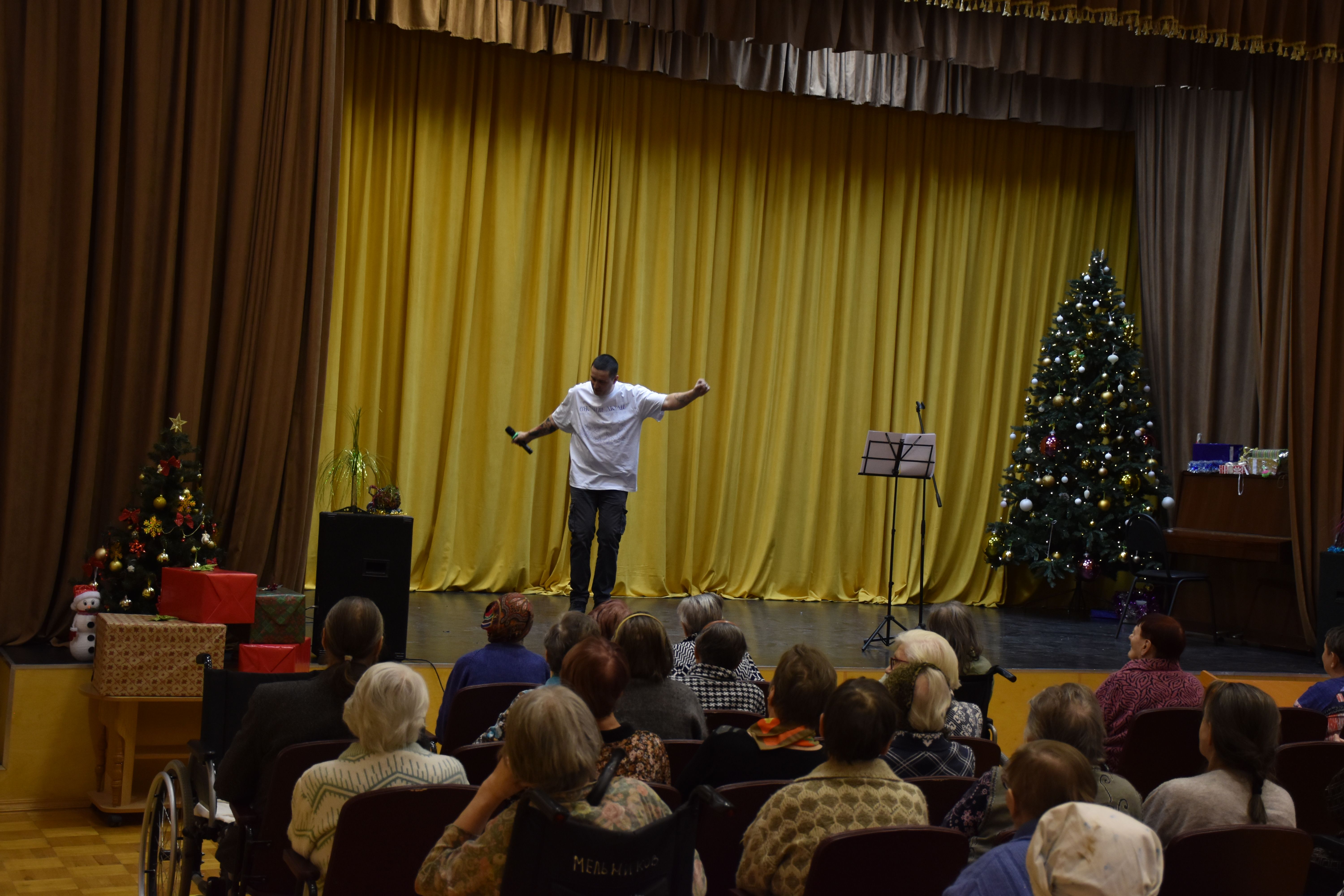 Завершился сегодняшний день визитом Деда Мороза, который на сей раз прибыл с подарками прямо из 32-го костромского лицея, и концертом новых для зрителей Октябрьского геронтологического центра исполнителей – Вероники Шараповой и Романа Мячева.