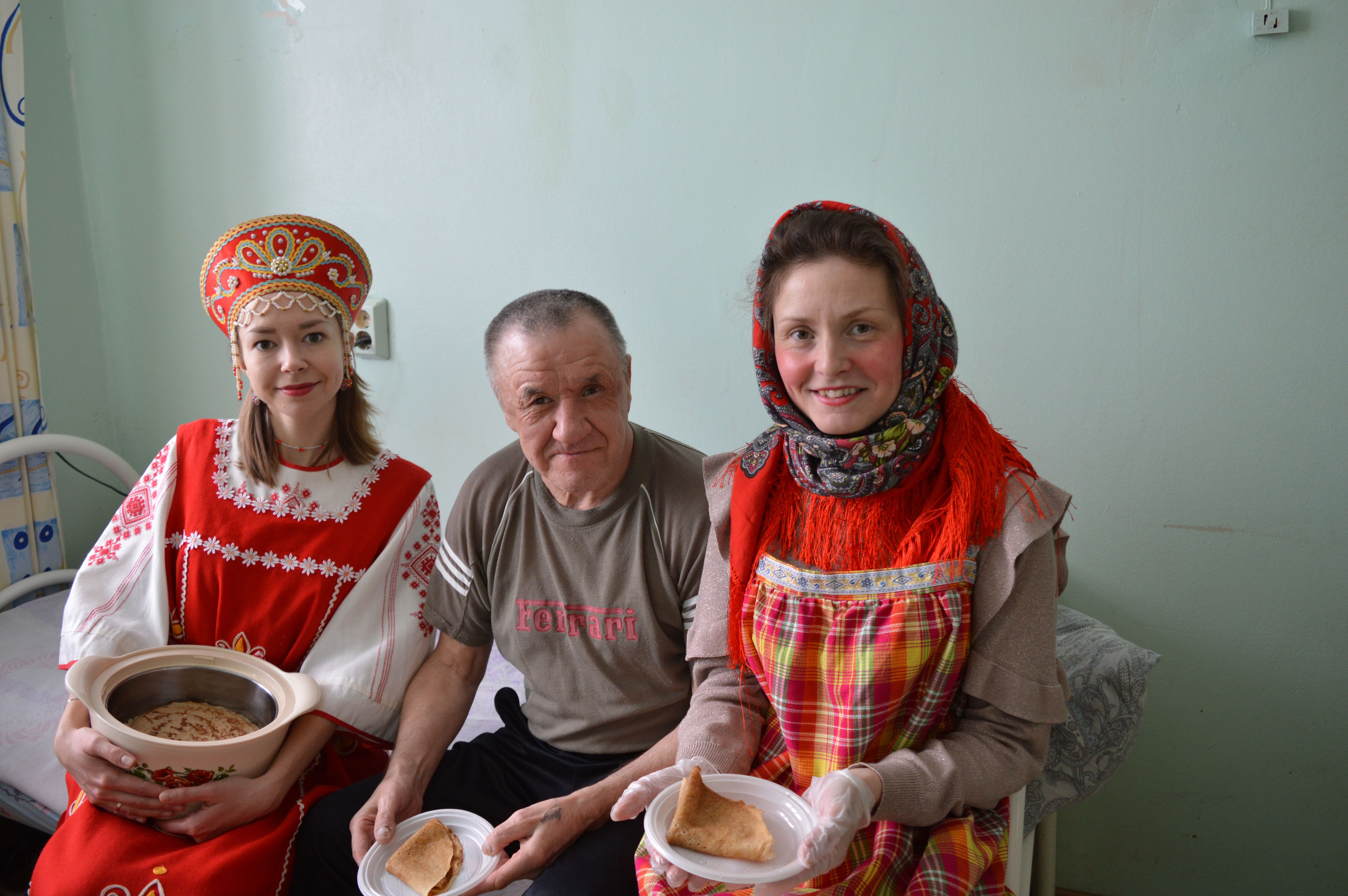 А у нас в Октябрьском геронтологическом центре участницы завтрашнего большого праздника решили сегодня провести своего рода генеральную репетицию, покрасоваться в праздничных нарядах да повеселить честной народ (мужскую его половину). Наши самодеятельные артисты посетили проживающих 4-го отделения милосердия, пели для них весенние песни, весёлые частушки и заклички, загадывали блинные загадки и, конечно, угощали вкусными блинами. А как это было - вы можете узнать из нашего небольшого фоторепортажа.