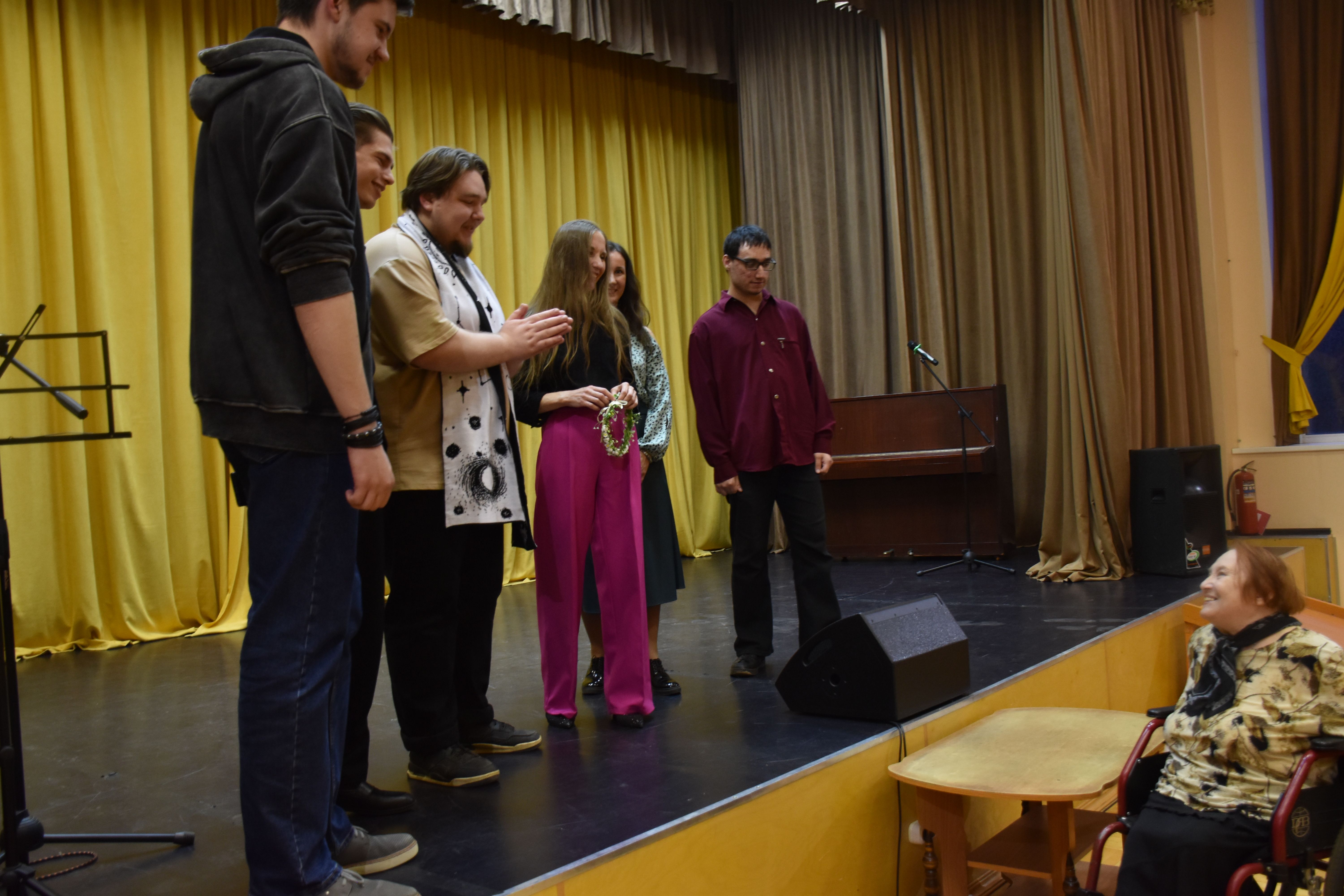 Сегодня в учреждении был вечерний - уже после ужина - театральный квартирник (доселе не знакомая нам форма творческой встречи), на котором и состоялось знакомство наших зрителей с новым коллективом. Молодые артисты душевно пели, ярко и проникновенно читали огромные монологи из спектаклей, рассказывали о себе, о театре. Несмотря на позднее время, ни один зритель не покинул зал до самого финала! От души желаем сегодняшнему составу "Друзей театра", руководимому Семёном Масловым, творческих успехов, интересных театральных работ, аншлагов в зрительных залах, ну и поскольку знакомство состоялось и прошло столь удачно - ждём ребят на нашей сцене теперь уже с полноценными спектаклями!