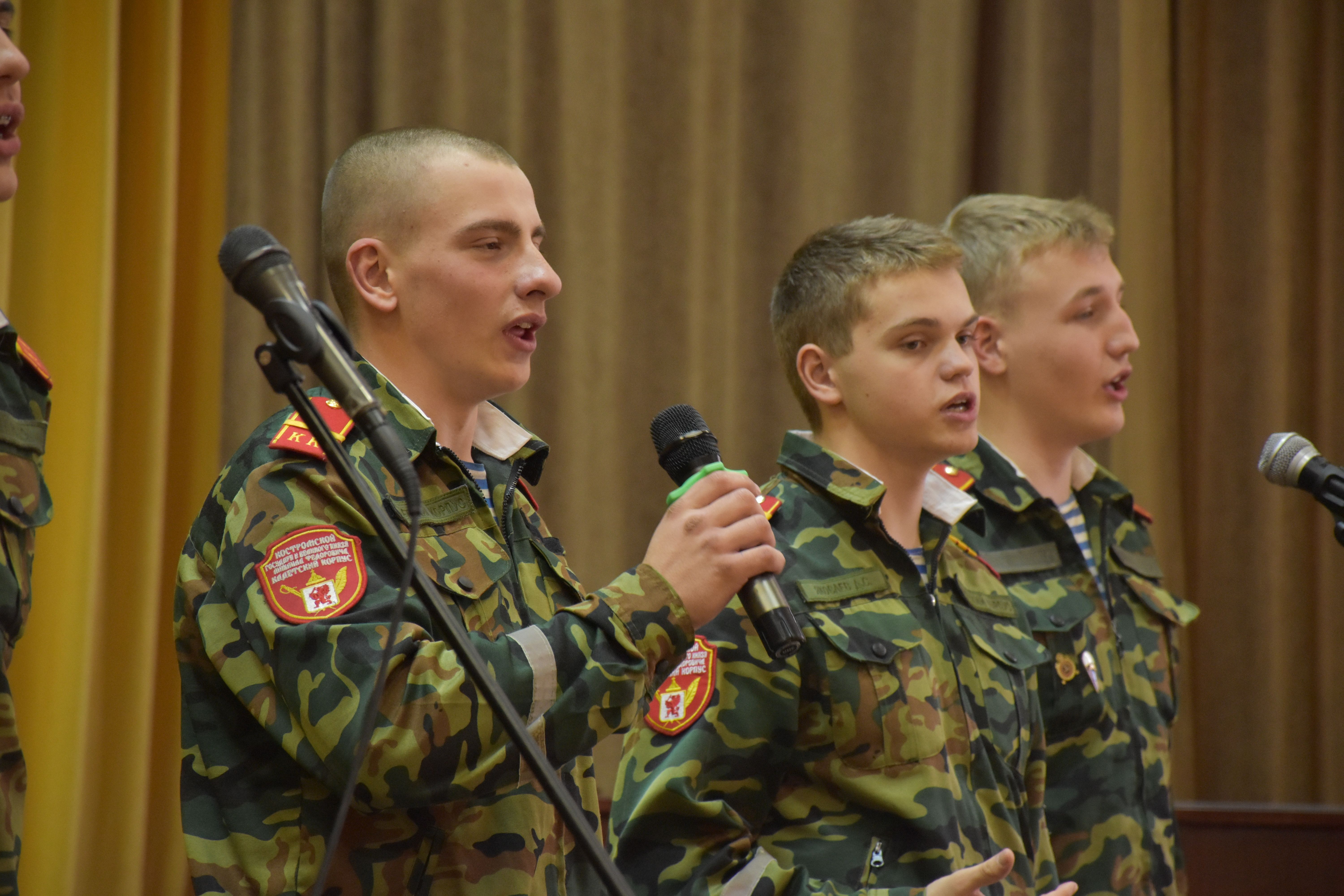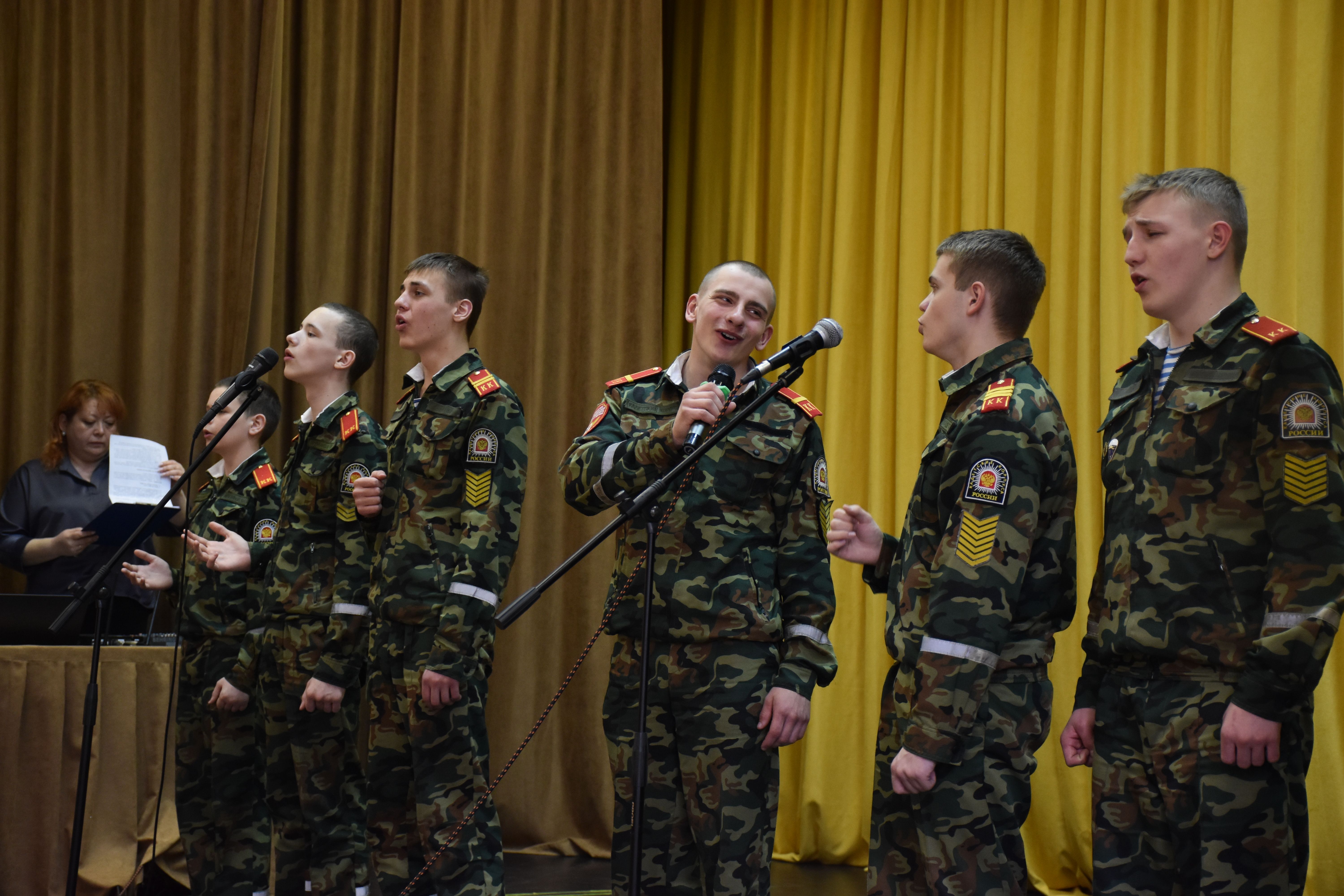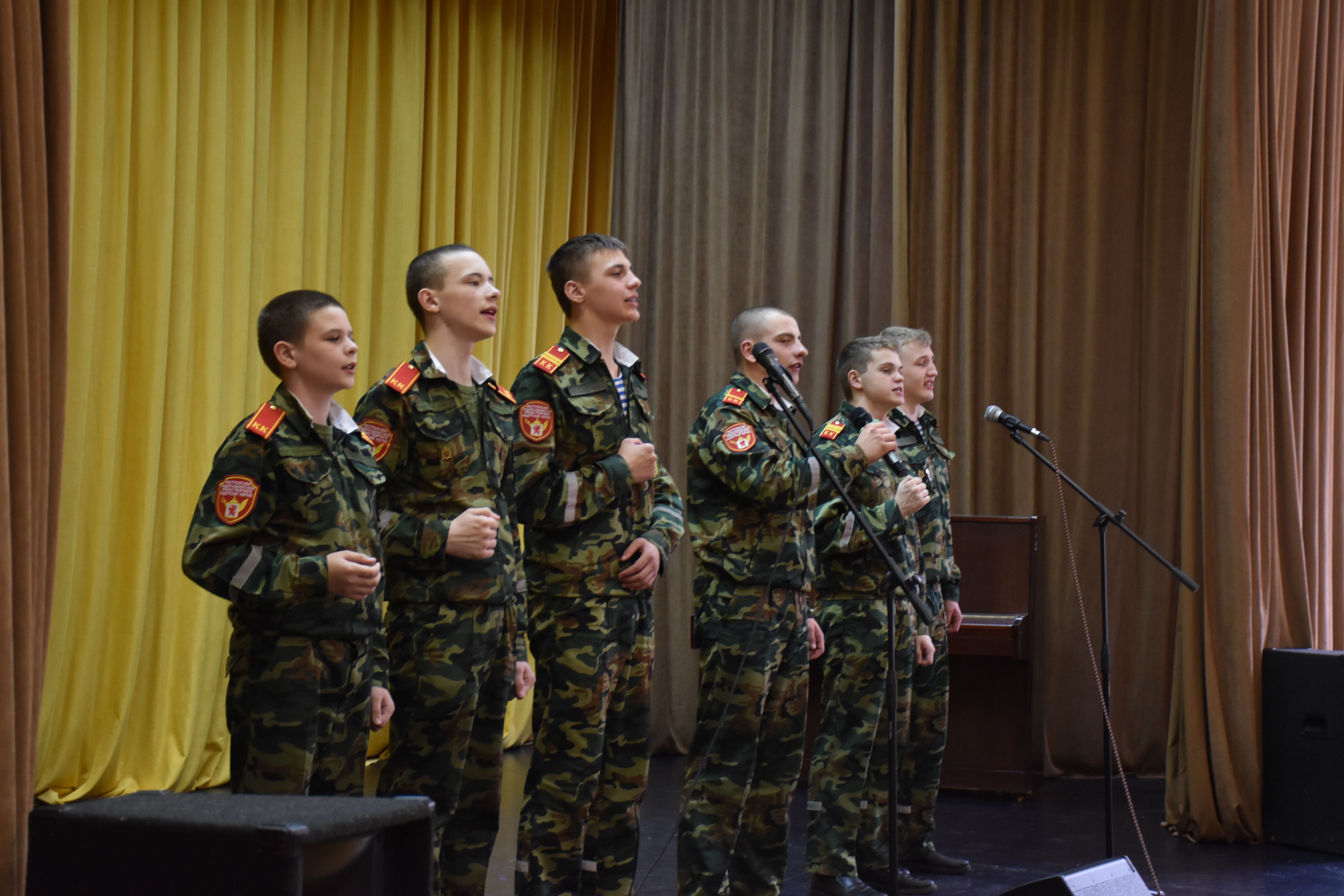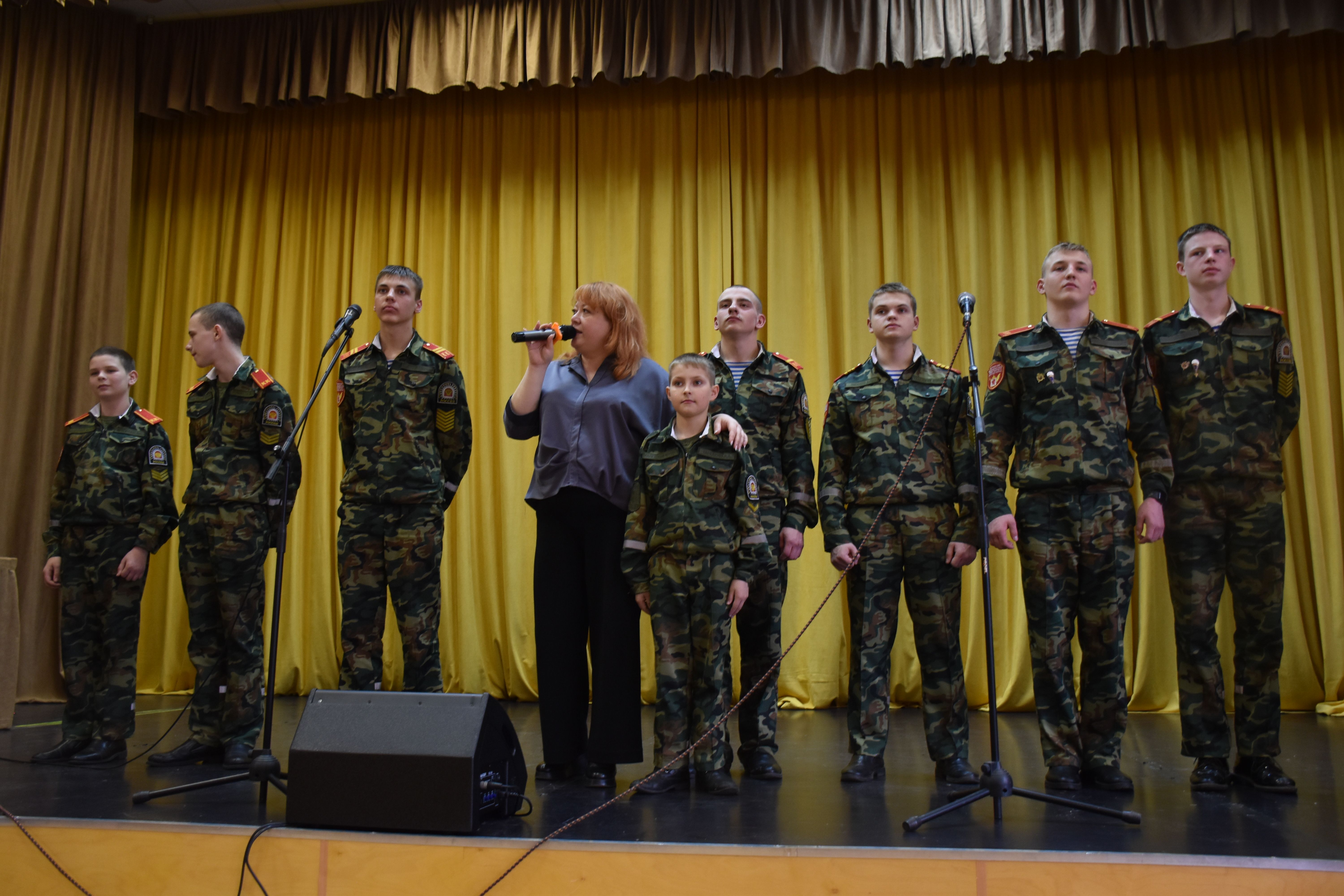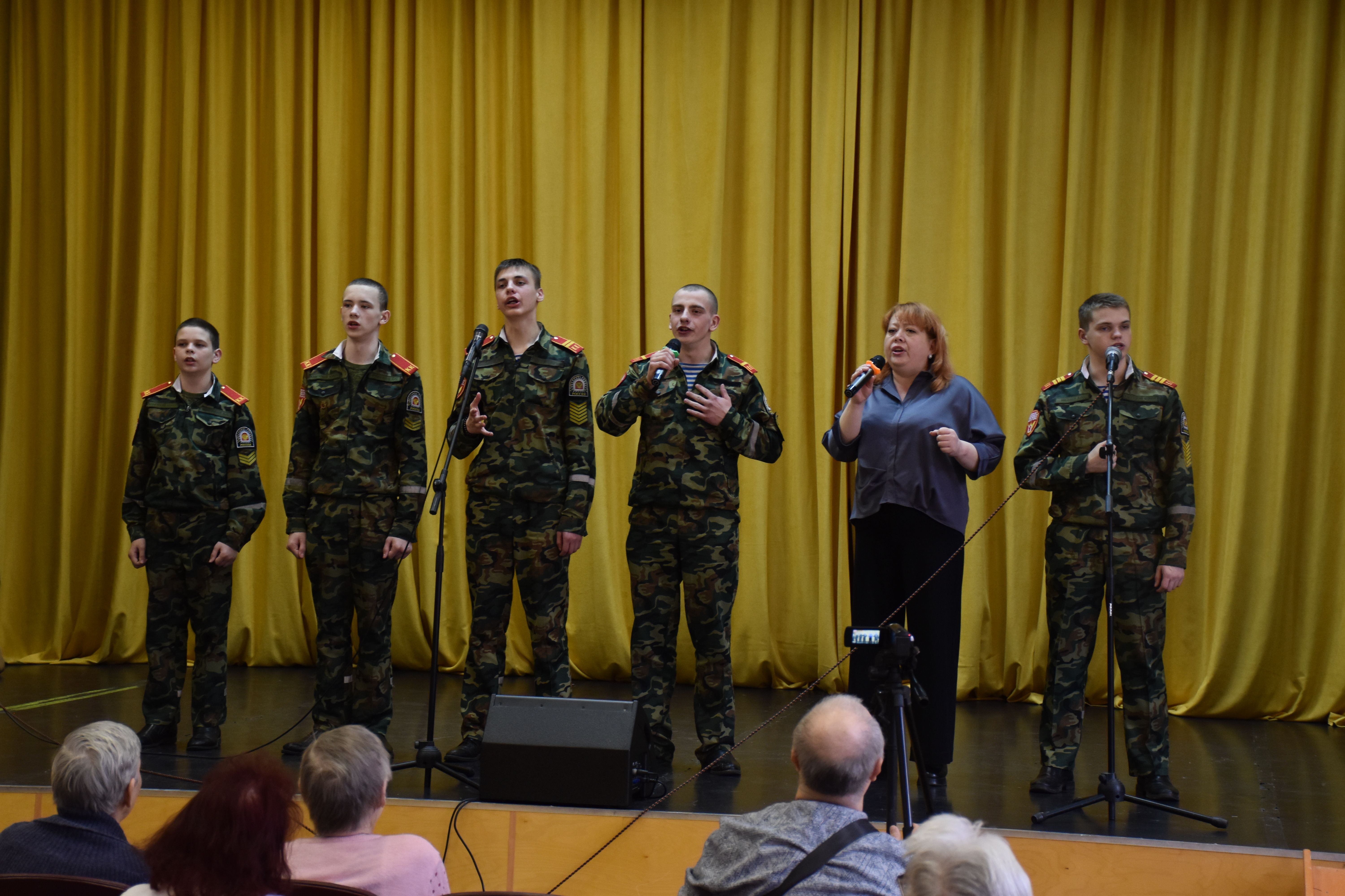 На сцену вышли Кирилл Альбом, Дмитрий Яковлев, Иван Бобин, Иван Колонтаевский, Никита Румянцев, Дмитрий Мелентьев, Леонид Тарелкин, а за пультом им помогал Макарий Максимов. Низкий поклон и огромная благодарность от имени всех зрителей, искренне и горячо встретивших юных артистов - будущих защитников Родины, всем ребятам - участникам концерта, и, в первую очередь, их руководителю, педагогу кадетского корпуса Елене Борисовне Остряковой, не только подготовившей такую замечательную патриотическую программу, но и принявшей в ней личное творческое участие.