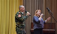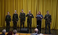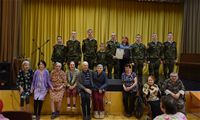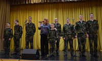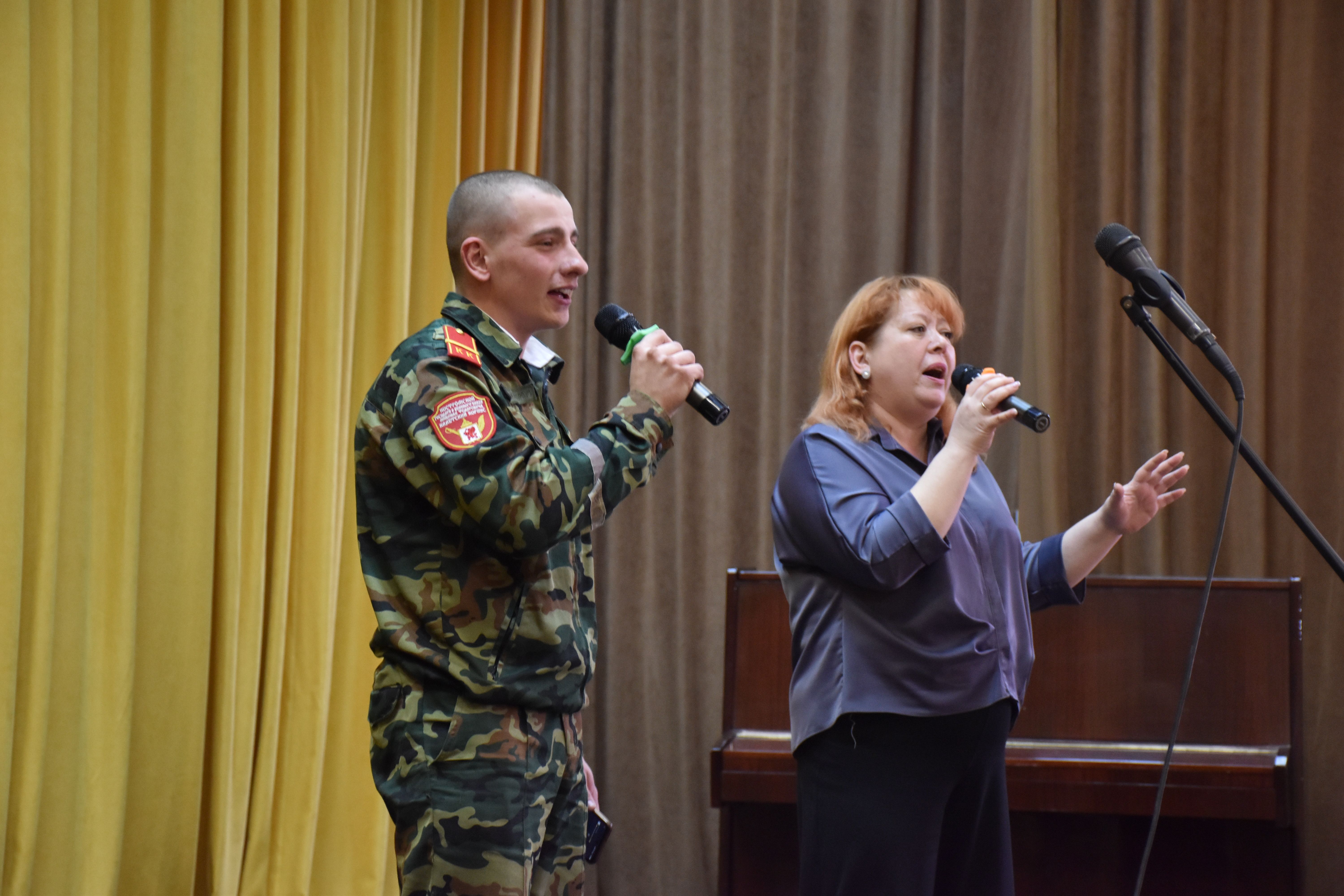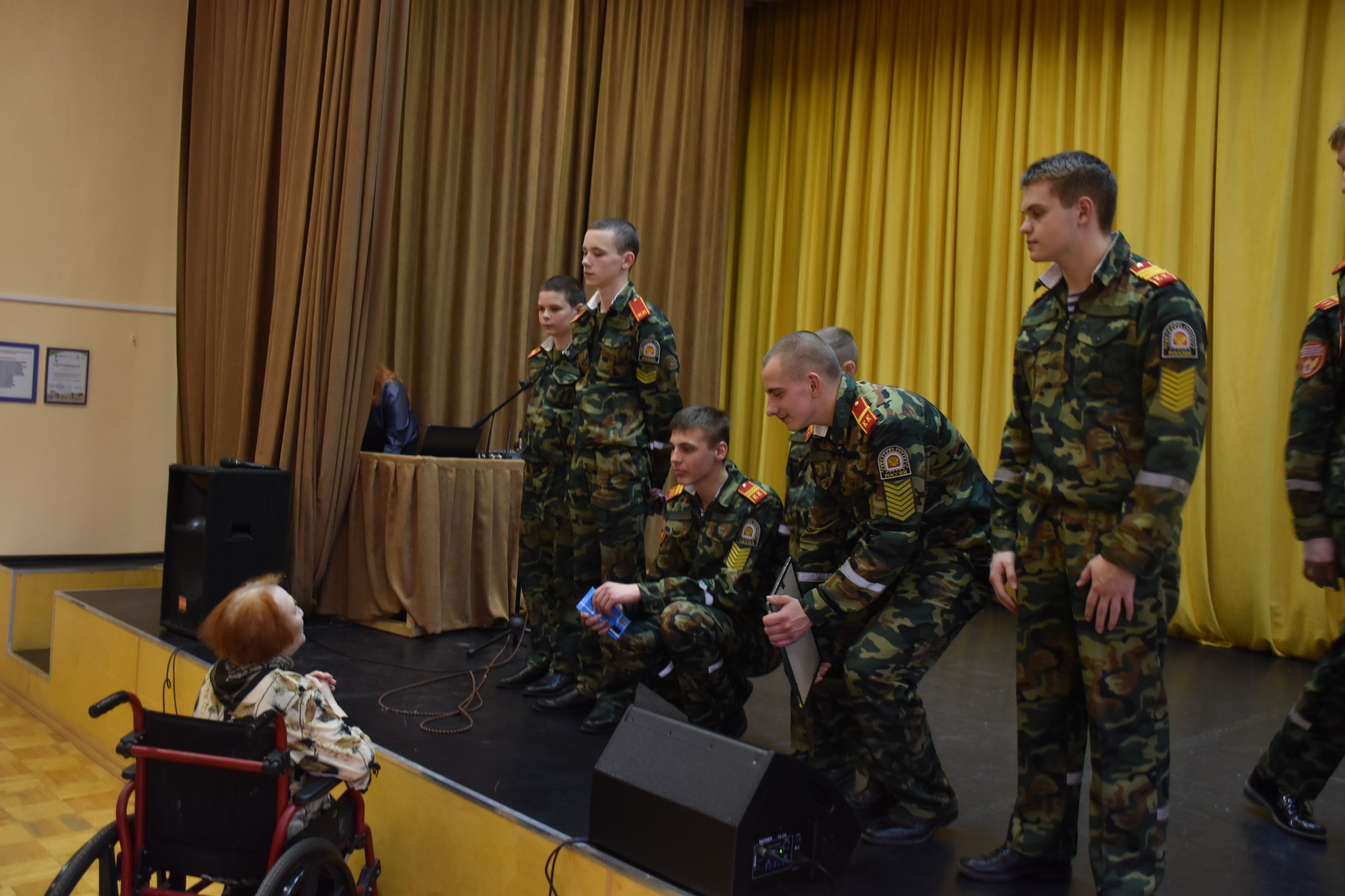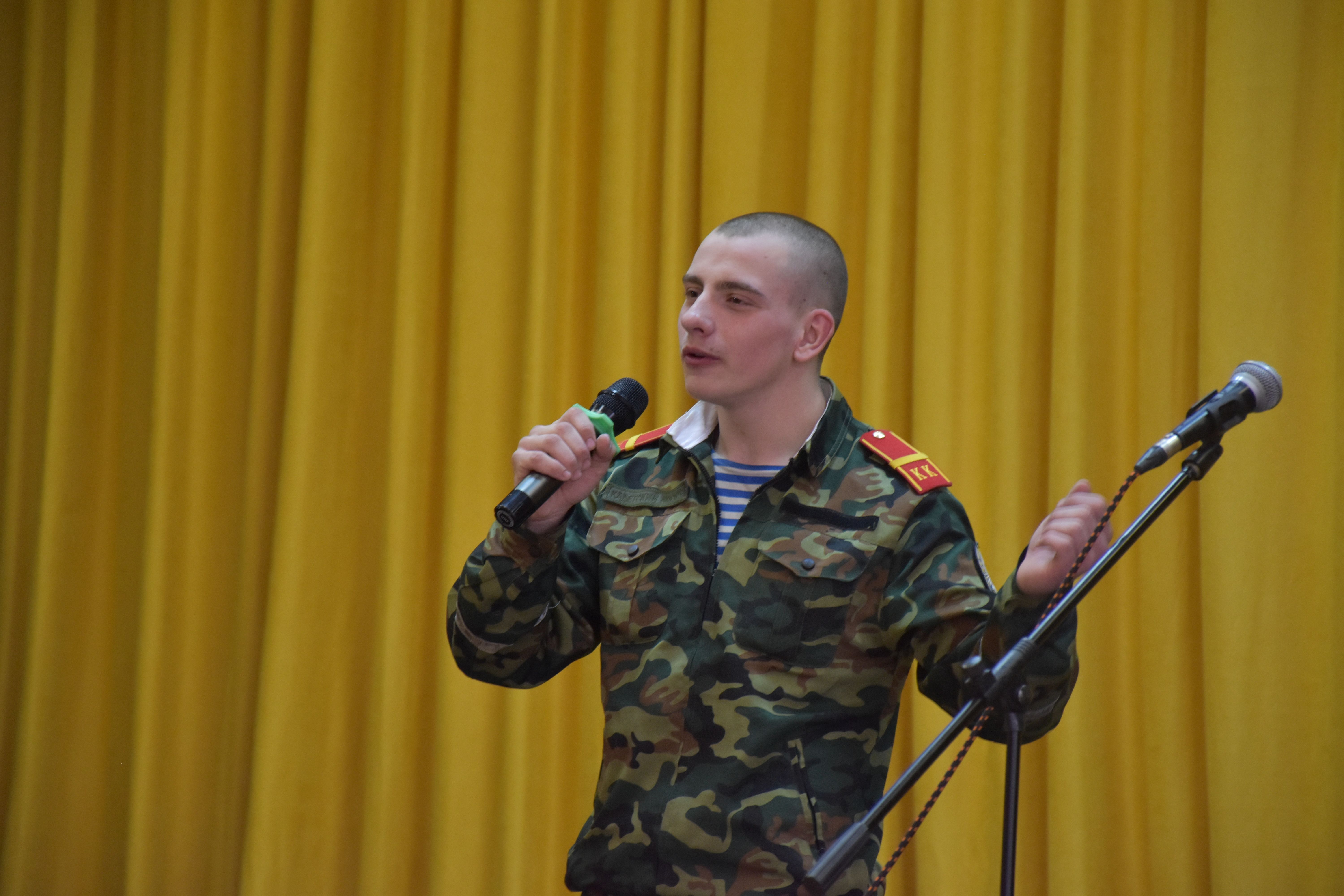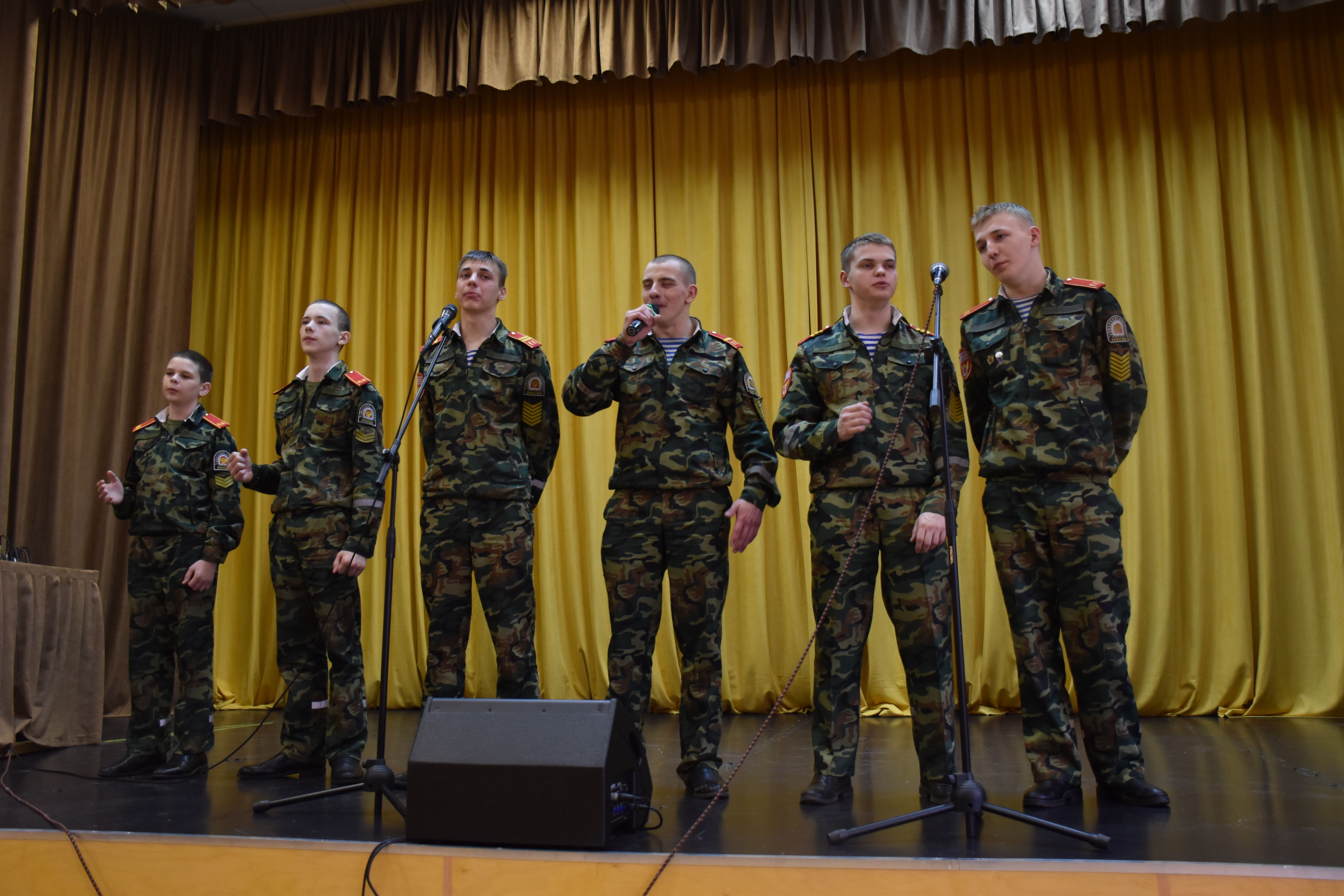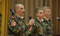 На сцену вышли Кирилл Альбом, Дмитрий Яковлев, Иван Бобин, Иван Колонтаевский, Никита Румянцев, Дмитрий Мелентьев, Леонид Тарелкин, а за пультом им помогал Макарий Максимов. Низкий поклон и огромная благодарность от имени всех зрителей, искренне и горячо встретивших юных артистов - будущих защитников Родины, всем ребятам - участникам концерта, и, в первую очередь, их руководителю, педагогу кадетского корпуса Елене Борисовне Остряковой, не только подготовившей такую замечательную патриотическую программу, но и принявшей в ней личное творческое участие.
