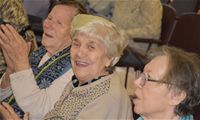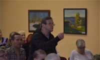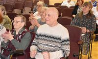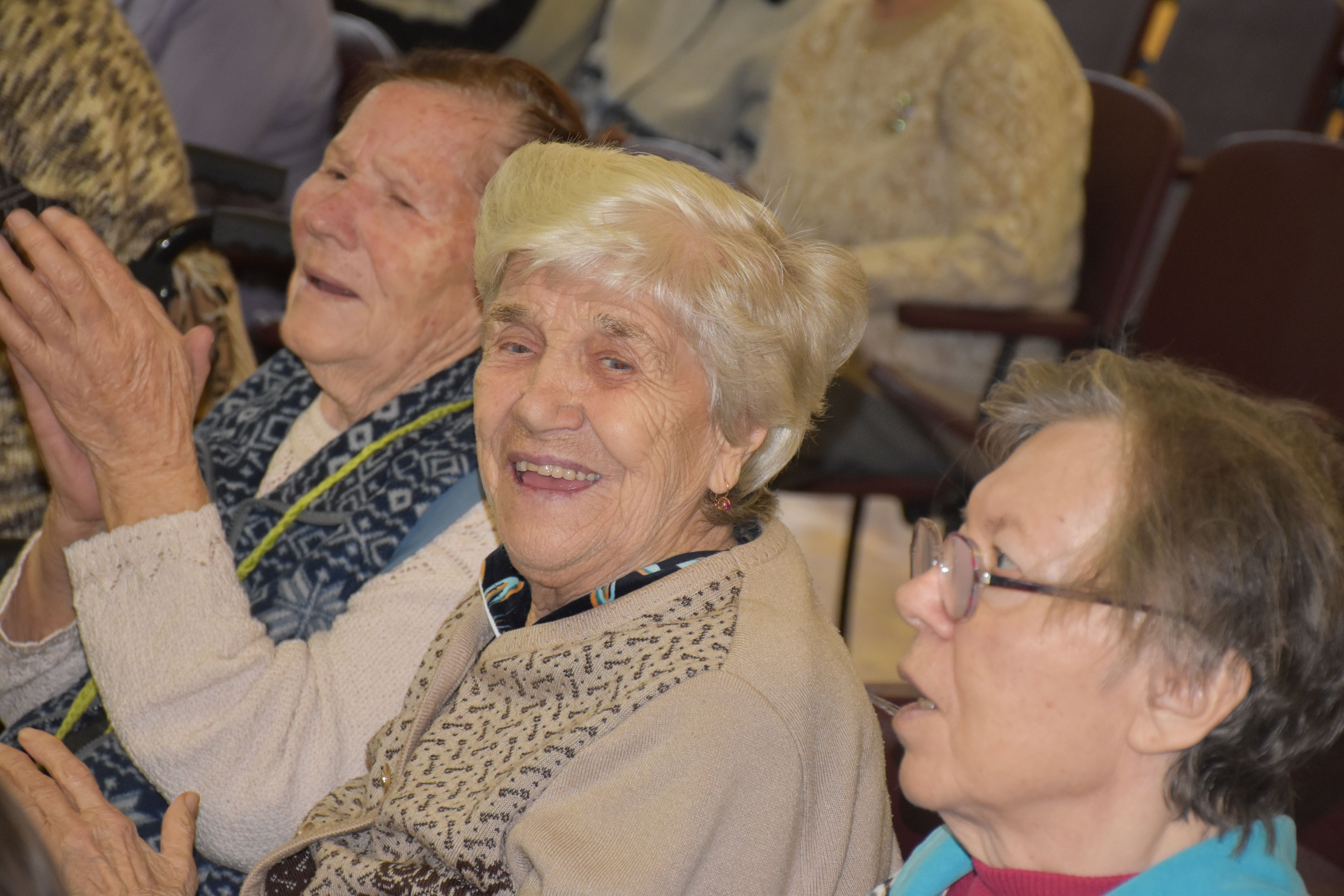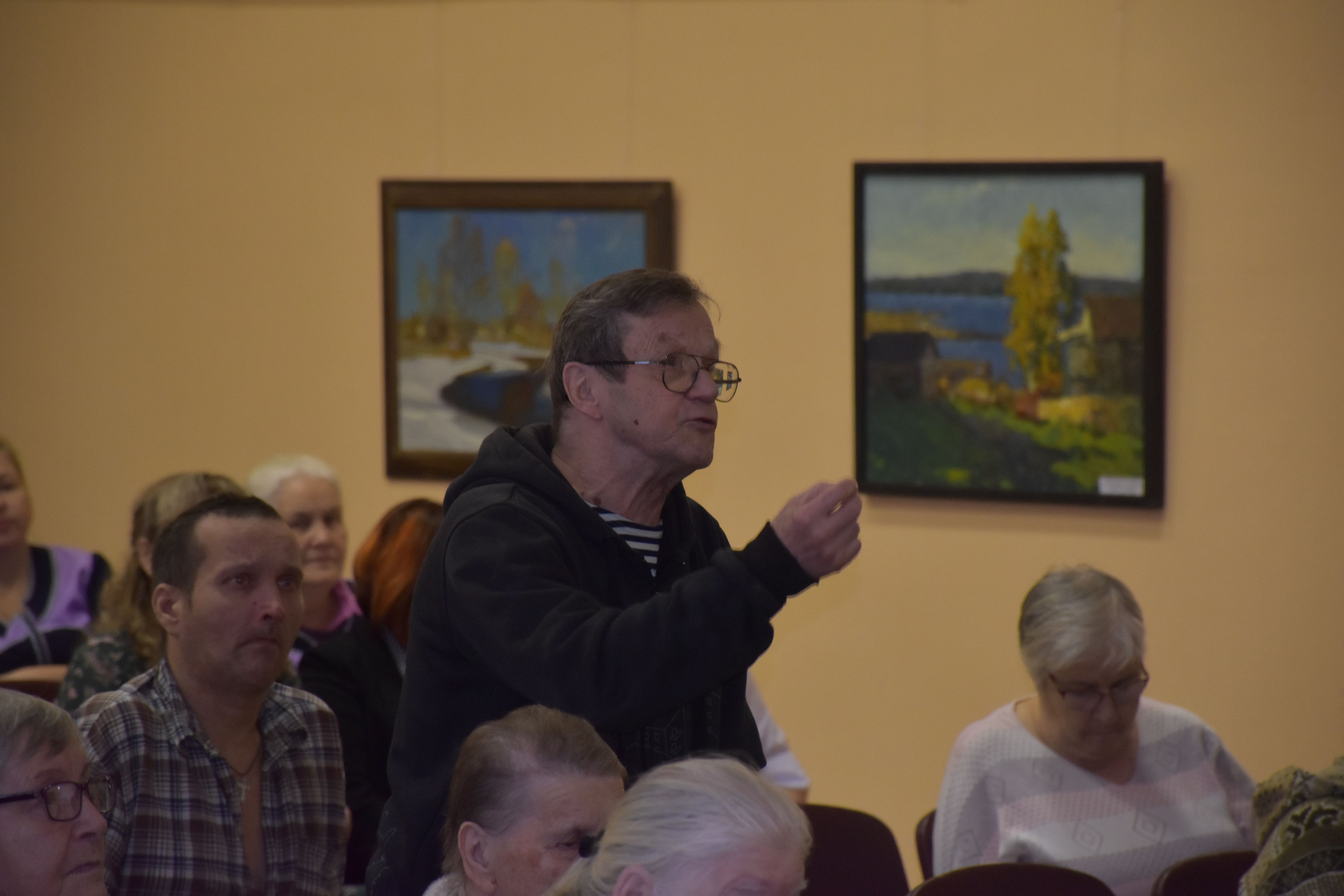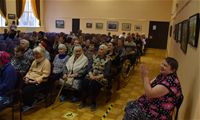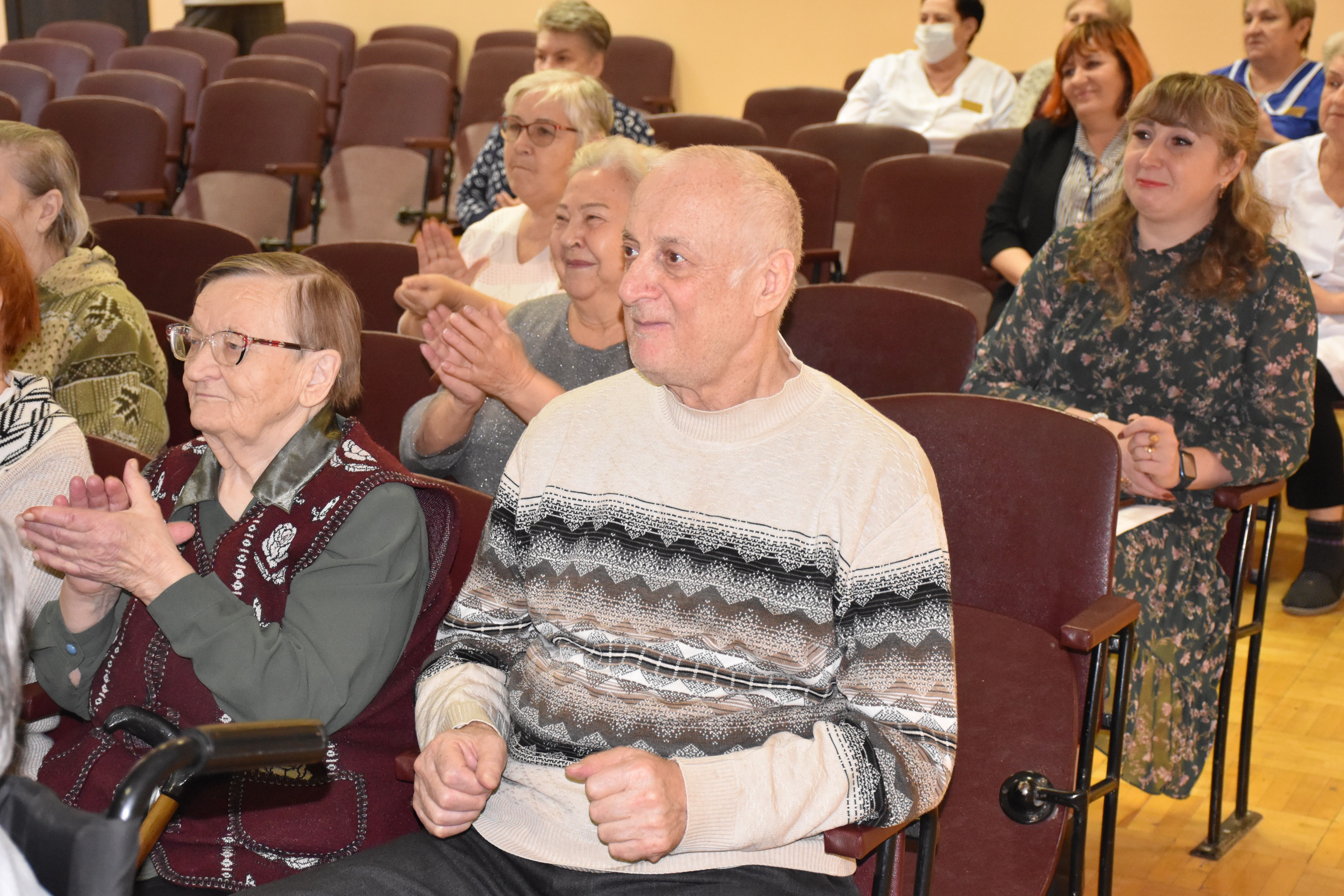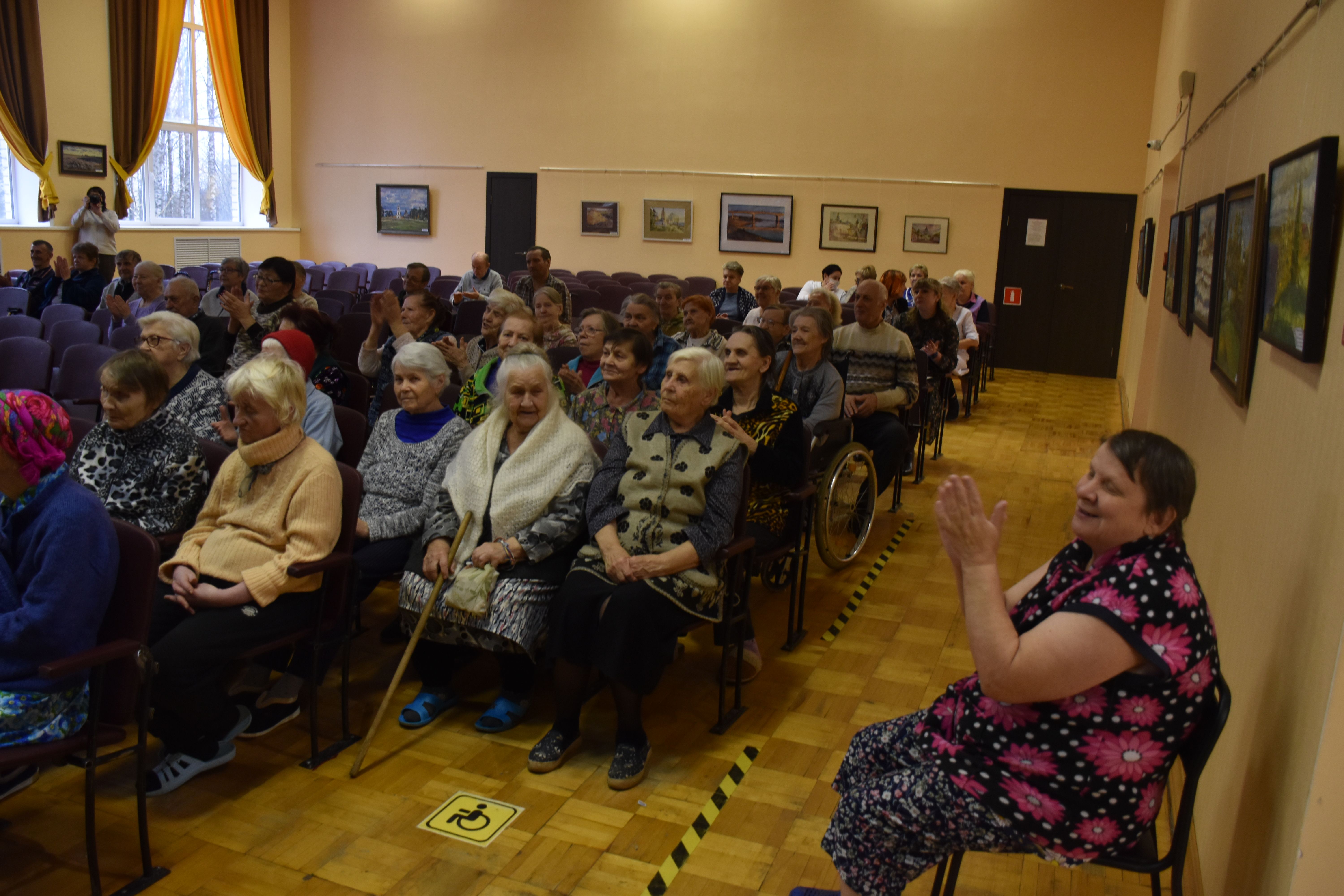 Перед собравшимися в актовом зале проживающими и сотрудниками учреждения выступили старший лейтенант полиции, инспектор ООДУУП и ПДН УМВД России по Костромской области Сергей Александрович Волгин и член общественного совета при УМВД России по Костромской области Андрей Сергеевич Гусев. Они напомнили слушателям о том, как вести себя в случае, если вы подверглись телефонному мошенничеству. Проживающие задали гостям интересующие их вопросы, поделились личным опытом общения с мошенниками. А поскольку Андрей Гусев - давний друг проживающих центра - еще и соруководитель благотворительного фонда "Добро Кострома", да еще и человек творческий, он с большой радостью подарил собравшимся свою мини-программу, спев несколько давно любимых пожилыми людьми песен их молодости. Именно поэтому на фотографиях, сделанных во время встречи, видно, что некоторые из них сидящих в зале с радостью подпевают любимому исполнителю.