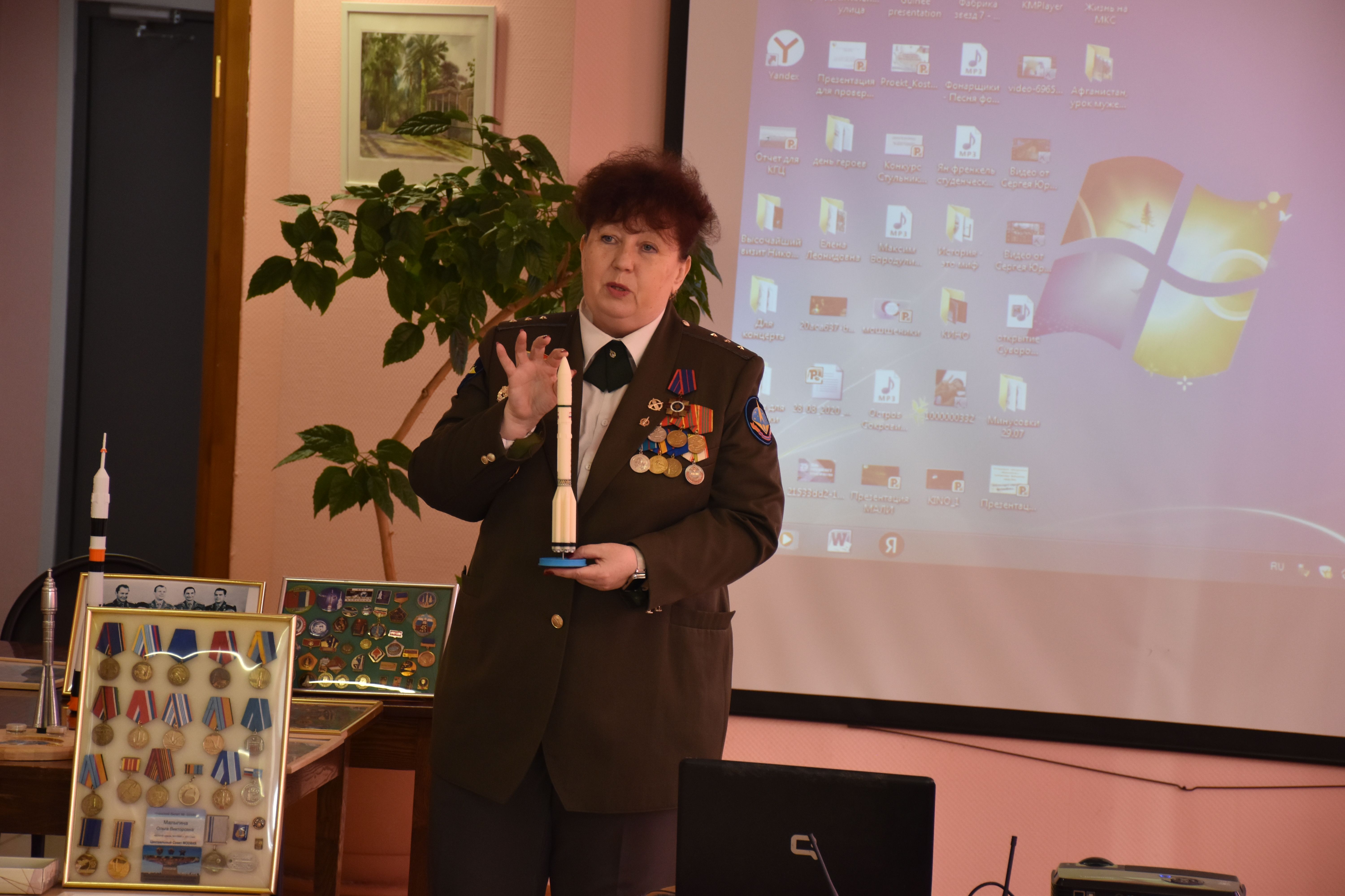 Трудно выразить эмоции, которые переполняют сердца и души после встречи проживающих и сотрудников Октябрьского геронтологического центра с удивительным человеком - ветераном Вооружённых сил, ветераном космодрома Байконур, почётным военным связистом, старшим прапорщиком запаса, лектором Российского общества "Знание" Ольгой Викторовной Малыгиной.