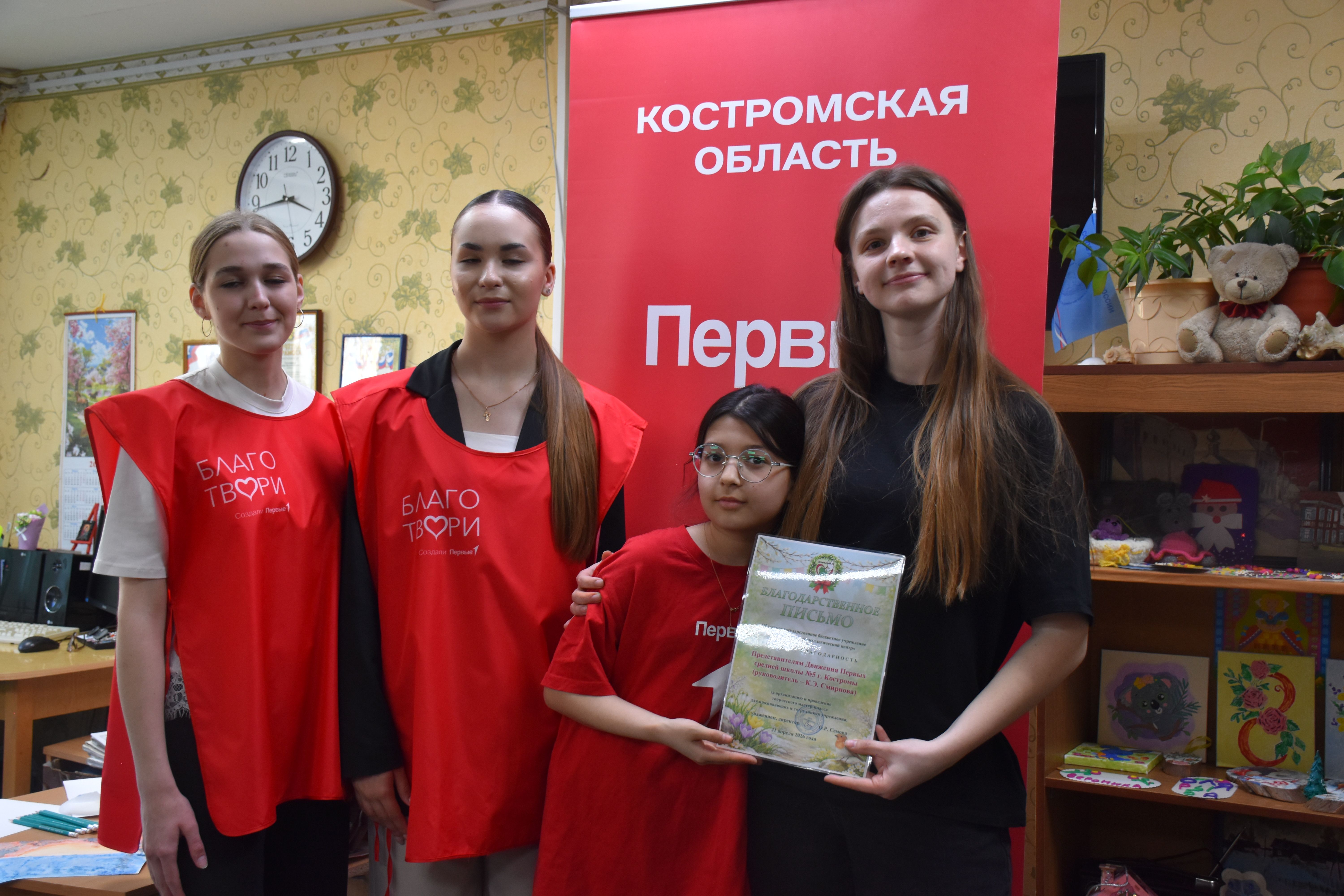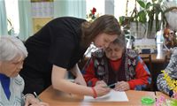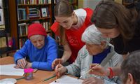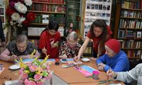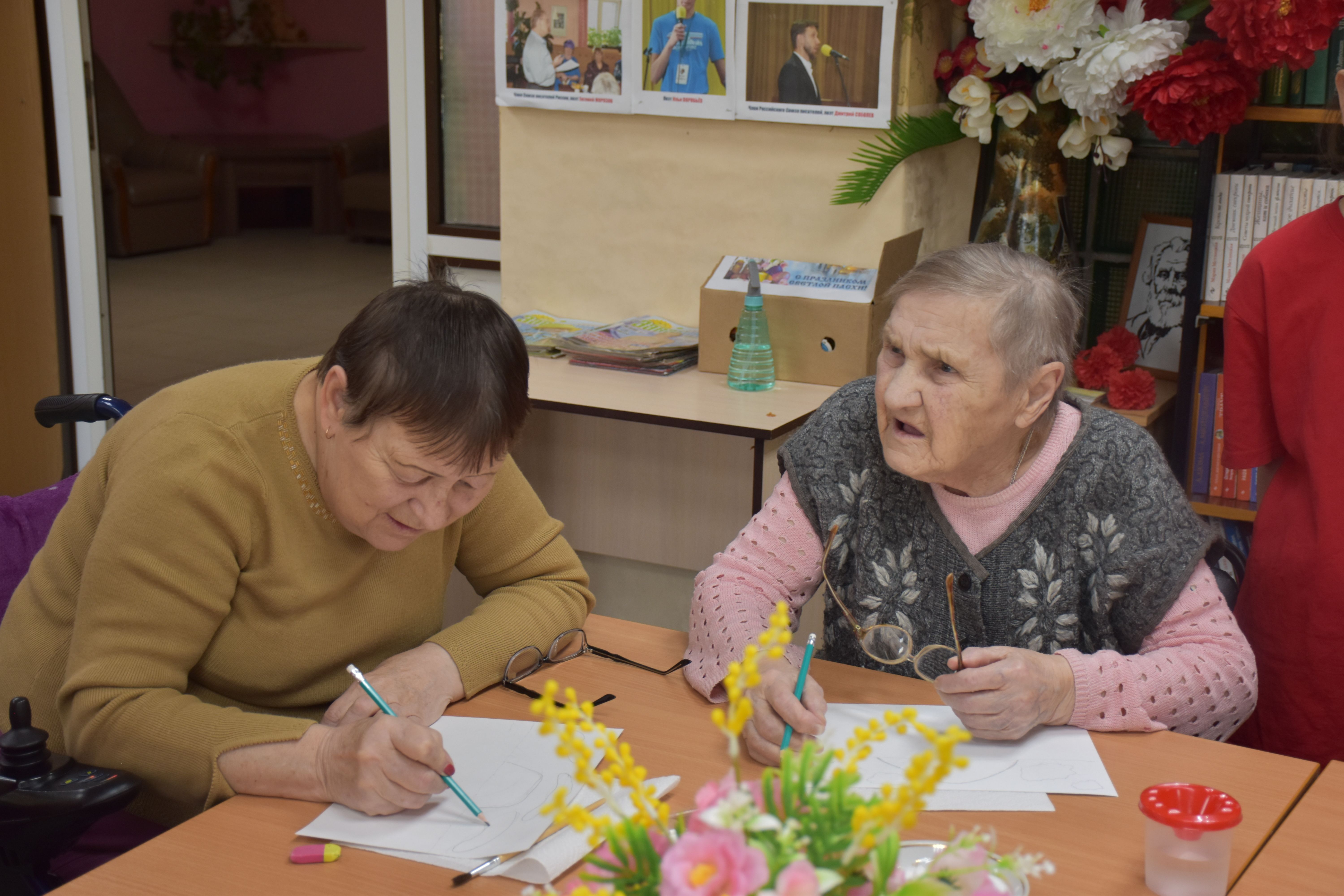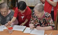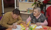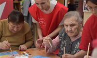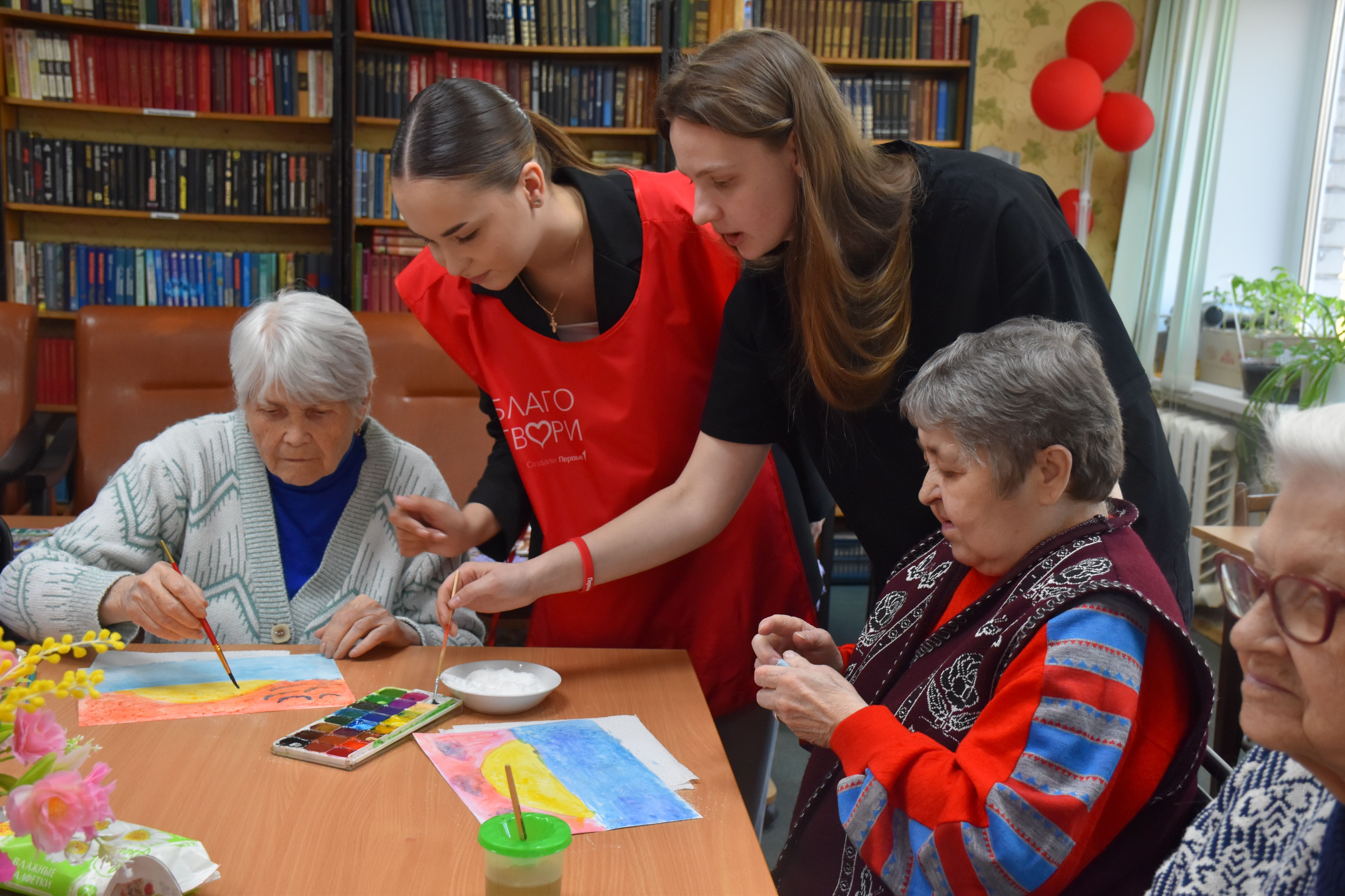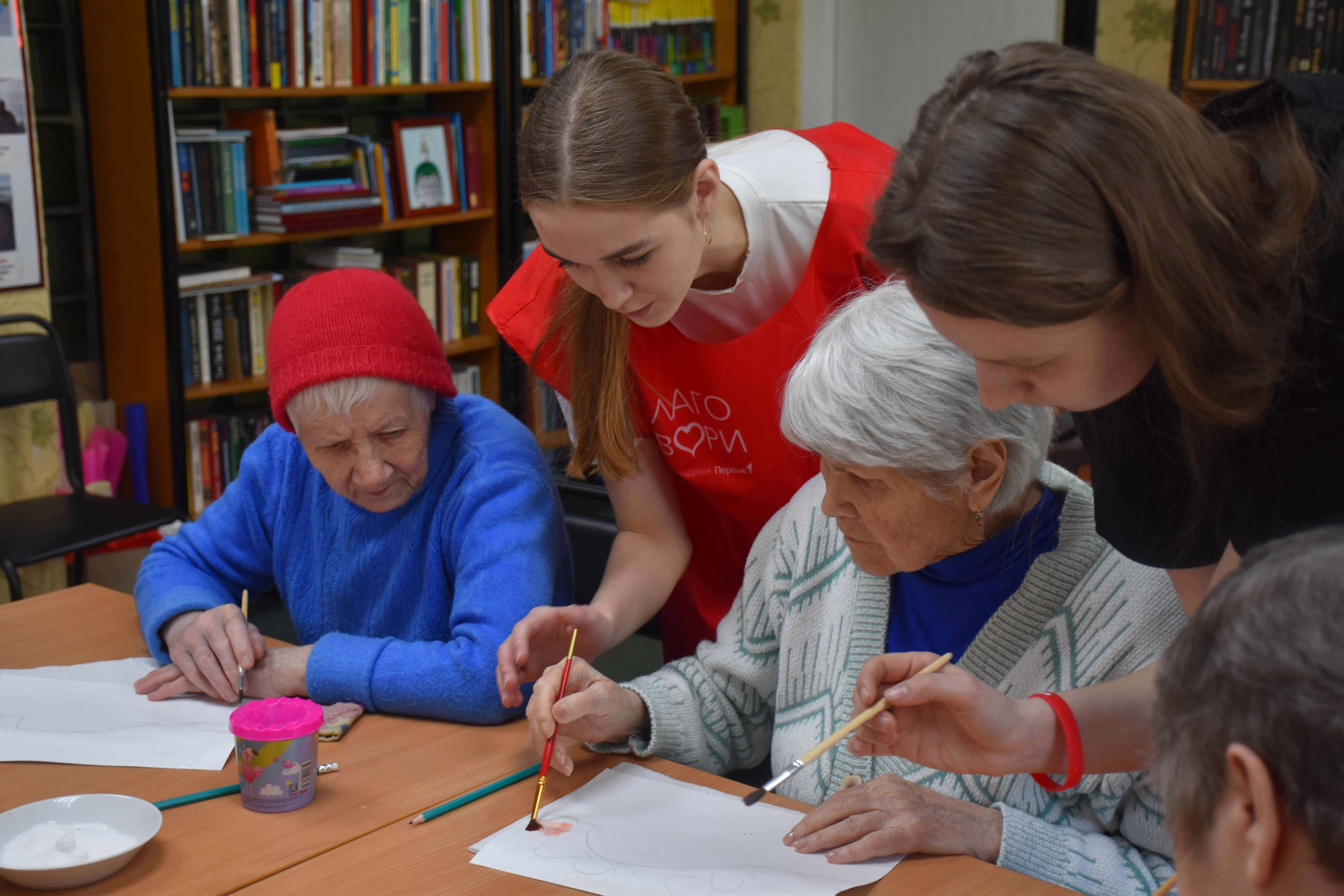 Заключительным творческим аккордом вторника стал оригинальный мастер-класс по написанию картин акварелью с использованием соли, который провели для проживающих Октябрьского геронтологического центра представители Движения Первых из 5-й костромской школы под руководством педагога Кристины Эдуардовны Смирновой.