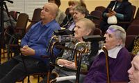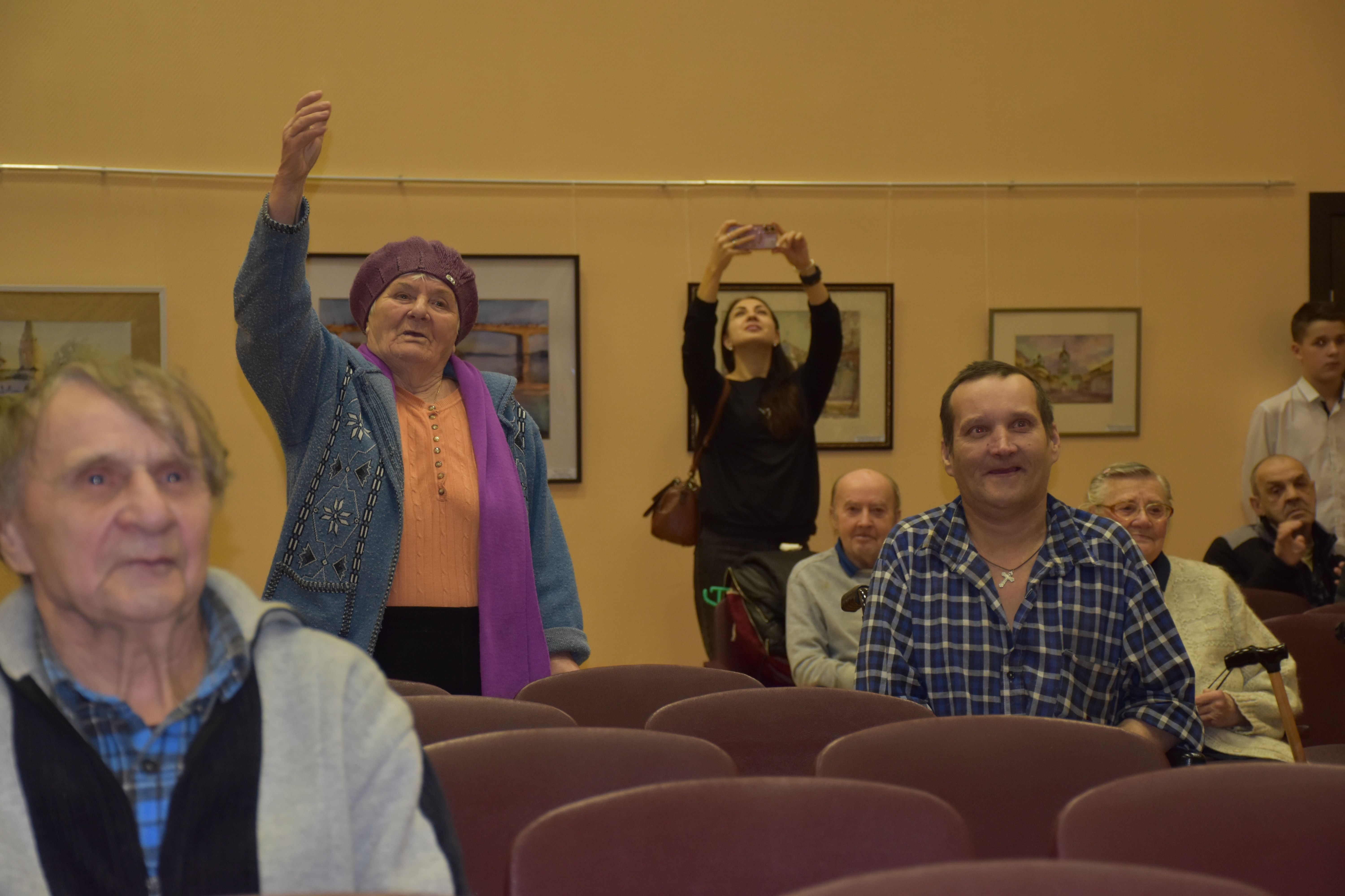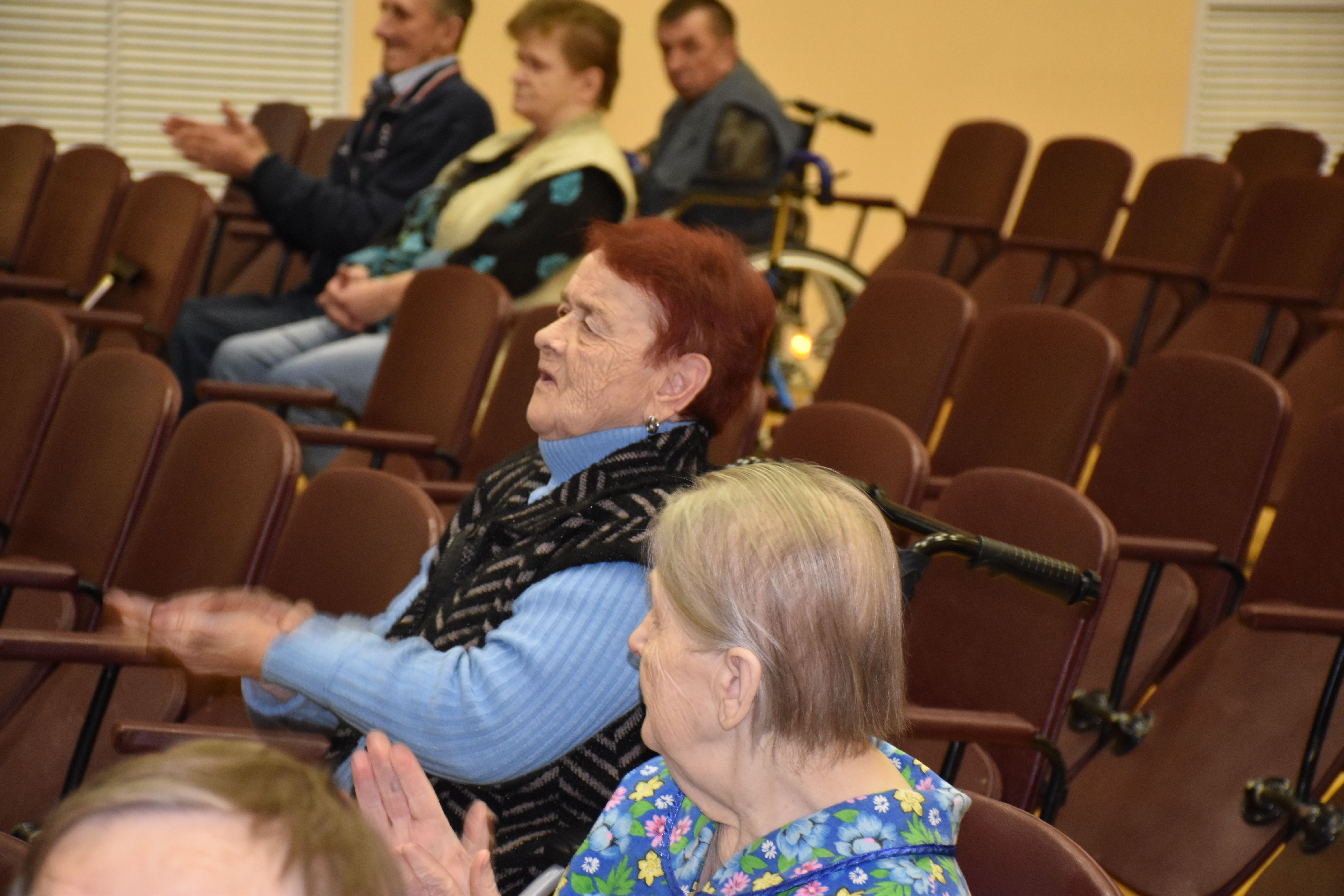 А пригласила Вера Николаевна принять участие в этом "концерте с лист" и певцов, и танцоров, и артистов разговорного даже и оригинального жанра. Огромный интерес вызвало и тронуло до глубины души выступление Никиты Беляева, исполнившего песню "Мама" с сурдопереводом. Запомнились и восхитили парные танцы в исполнении Кристины Разиной и Григория Головина, Дарьи Гришиной и Даниила Руднева, Анастасии Мирошкиной и Александра Гончарова. Криками "браво" приветствовали зрители вокалистов Дарью Галафееву, Ангелину Иванову, Надежду Лебедеву, Варвару Смирнову, коллективы "Микс" и "Синхрон"... А кое-кто из зрителей даже встретил среди артистов своих родственников. Все концертные номера были исполнены с большой любовью и уважением к нашей возрастной аудитории. Этот концерт - завершающий в череде творческих программ ноября. Важно отметить, что в наше учреждение приезжают разновозрастные друзья и волонтёры. Приятно, что среди тех, кто сегодня сопровождал участников выступления, была наш большой друг, настоящий полковник Татьяна Владимировна Чагина и помощник директора Департамента по труду и социальной защите населения Костромской области Оксана Чередниченко. Друзья - пожалуй, это самая большая ценность для любого человека, и чем их больше, тем легче решаются проблемы, тем незаметнее становятся и проще преодолеваются трудности и невзгоды, тем интереснее жить!