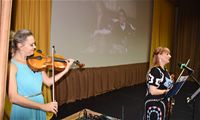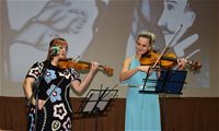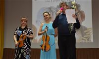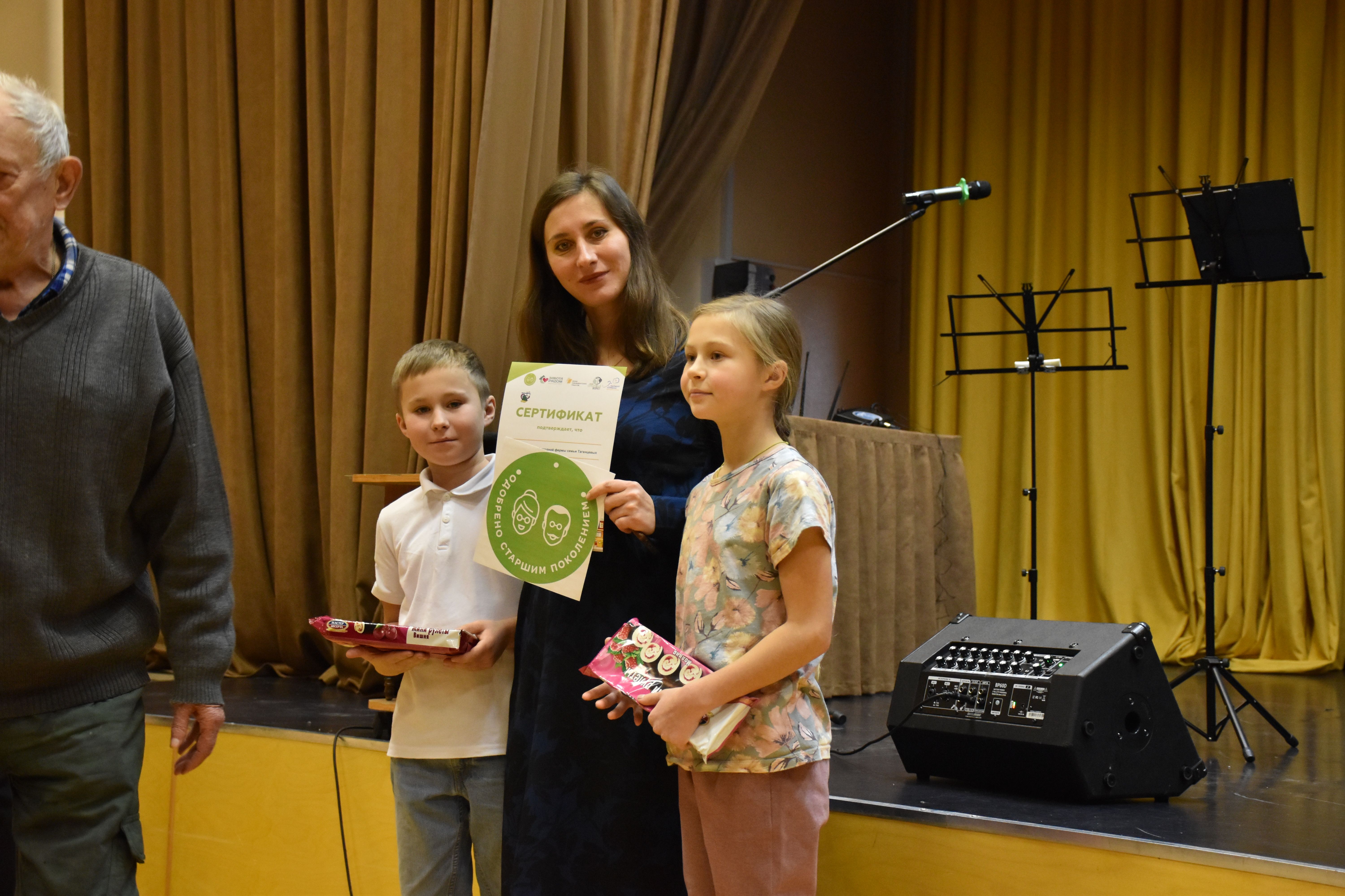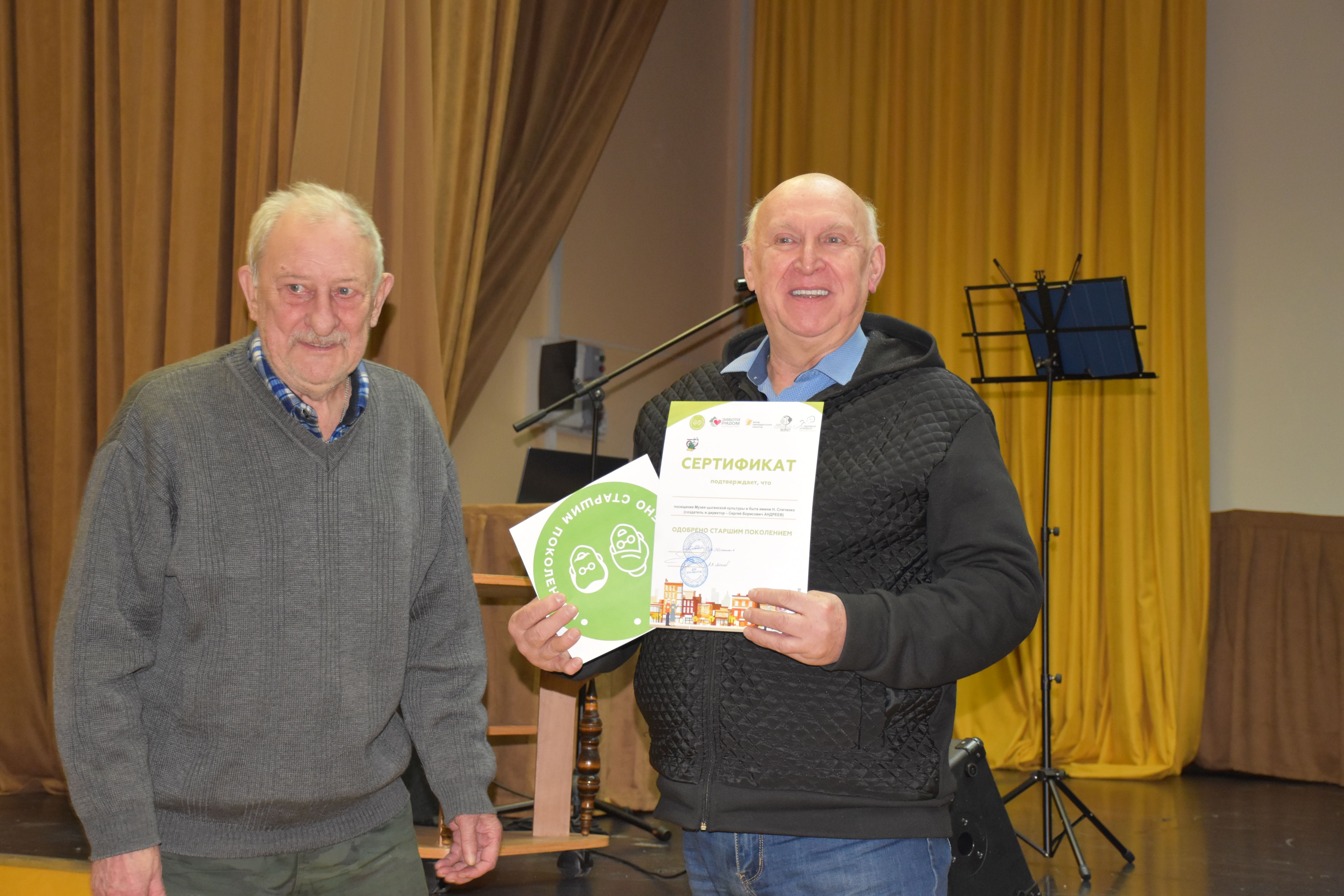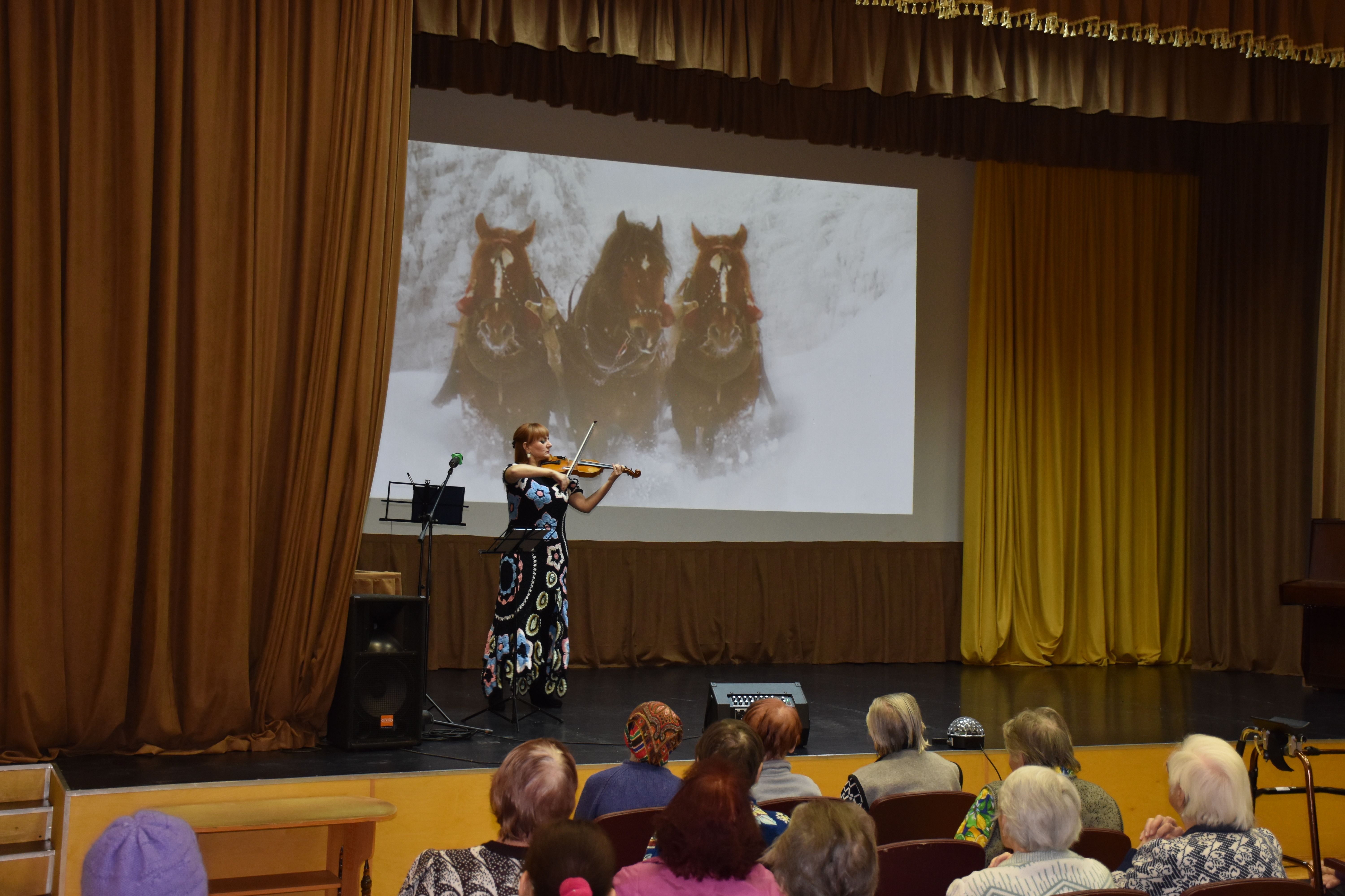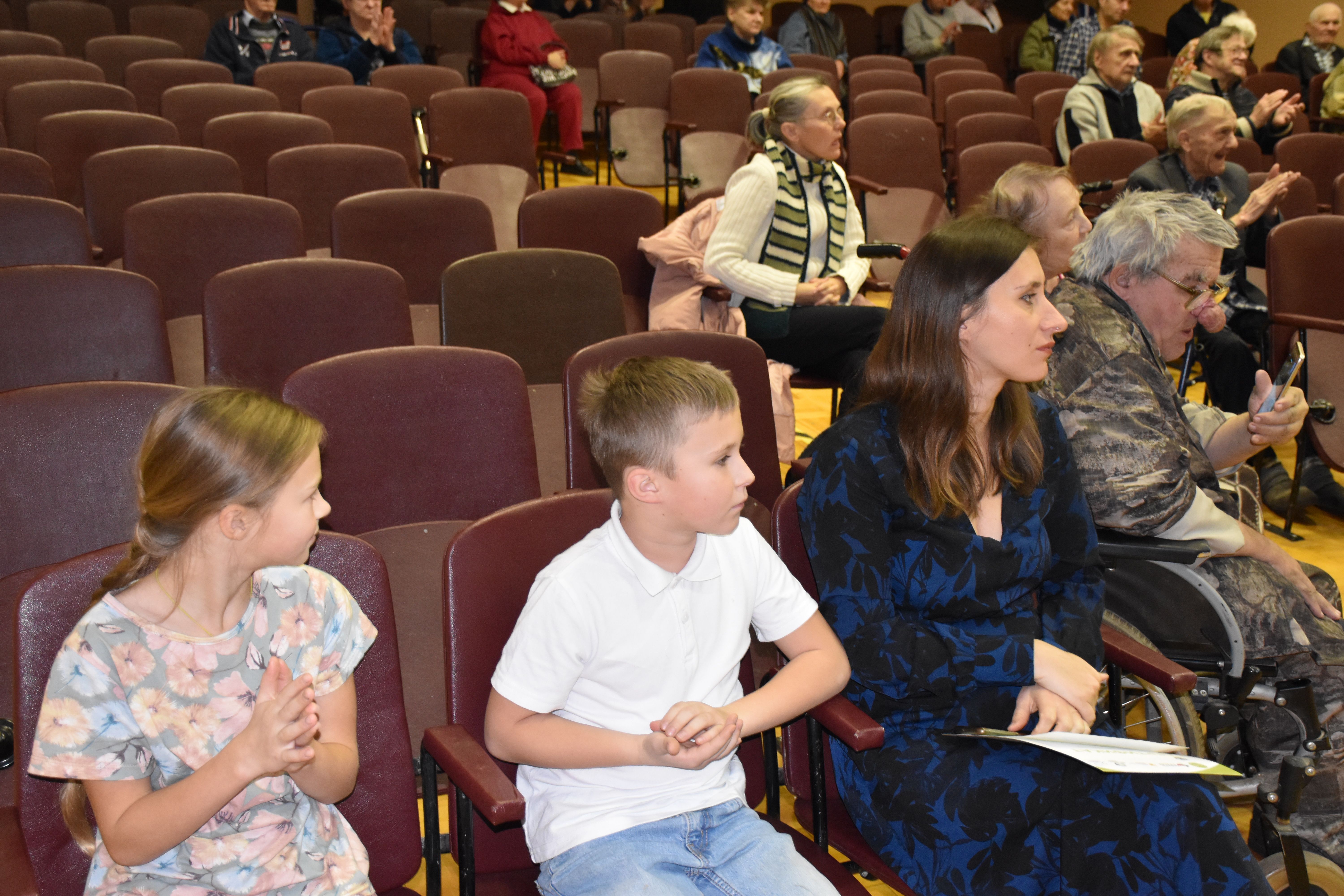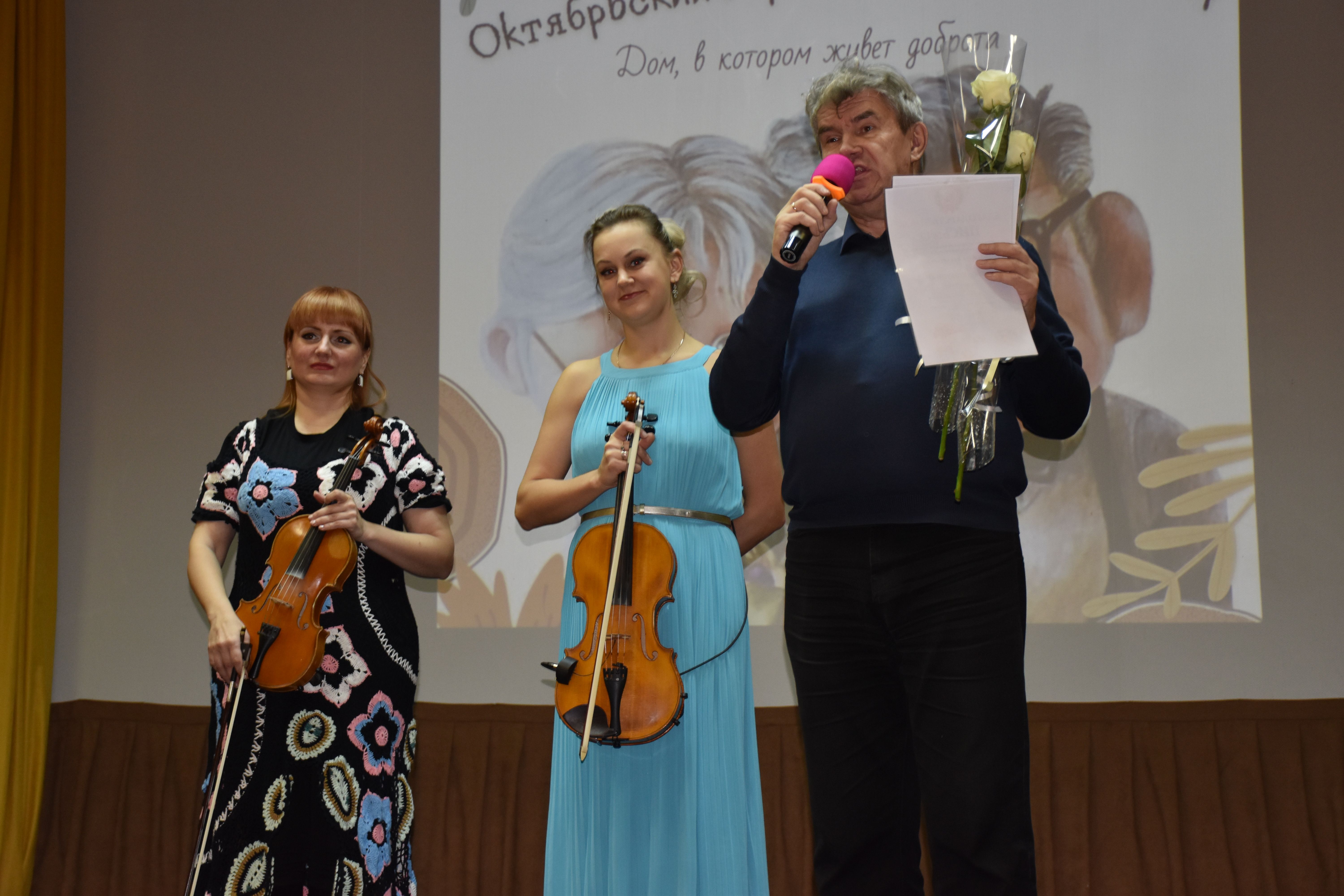 В первой части творческой встречи, состоявшейся в актовом зале Октябрьского геронтологического центра, мы представляли и чествовали номинантов акции "Одобрено старшим поколением" 2025 года. В гости к нашим серебряным волонтёрам и проживающим учреждения пришли основатель и директор единственного в России Музея цыганской культуры и быта имени Николая Сличенко Сергей Борисович Андреев (он же - Серж Макентош) и организаторы и хозяева Детской ягодной фермы семьи Таганцевых - Александра и её дети Максим и Алиса. По уважительной причине не смогли участвовать в церемонии третьи наши номинанты - представители семейного проекта "Костромской фонарщик" Анна Скудаева и Андрей Сметанин. Краткие рассказы-представления были дополнены небольшими видеороликами, которые наши друзья представили по нашей просьбе. Двоим из них сертификаты и наклейки акции вручил руководитель группы серебряных волонтёров центра Александр Александрович Кузнецов, третьему участнику наградные документы будут переданы позже. А сами серебряные волонтёры получили Благодарственное письмо, подписанное одним из соучредителей акции в нашем регионе, директором АНО "Радение" Алексеем Петровичем Липаевым. А во второй части встречи все присутствовавшие на ней получили великолепный, бесценный подарок. Перед ними выступили две уникальные артистки: Татьяна Витель (альт) и Анна Осокина (скрипка, вокал). О концерте Татьяны наши зрители знали заранее, из афиши, и очень ждали эту встречу с уже полюбившейся исполнительницей. А вот о том, что в концерте примет участие Анна, тоже уже знакомая нашим проживающим, его организаторы, да и сама Анна, как она призналась по окончании выступления, узнали только вчера, встреча девушек не была заранее запланирована, но она состоялась, и решение о совместном концерте было принято, что называется, "с листа". Комментировать концерт артисток такого профессионального уровня - дело неблагодарное. Дождёмся видео от нашего друга Руслана и предоставим нашим подписчикам возможность самим насладиться замечательной игрой и исполнением вокальных партий нашими дорогими гостьями. А мы от всей души их благодарим, приглашаем вновь и делимся с вами небольшим фотоотчётом об этой потрясающей встрече.