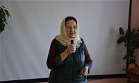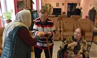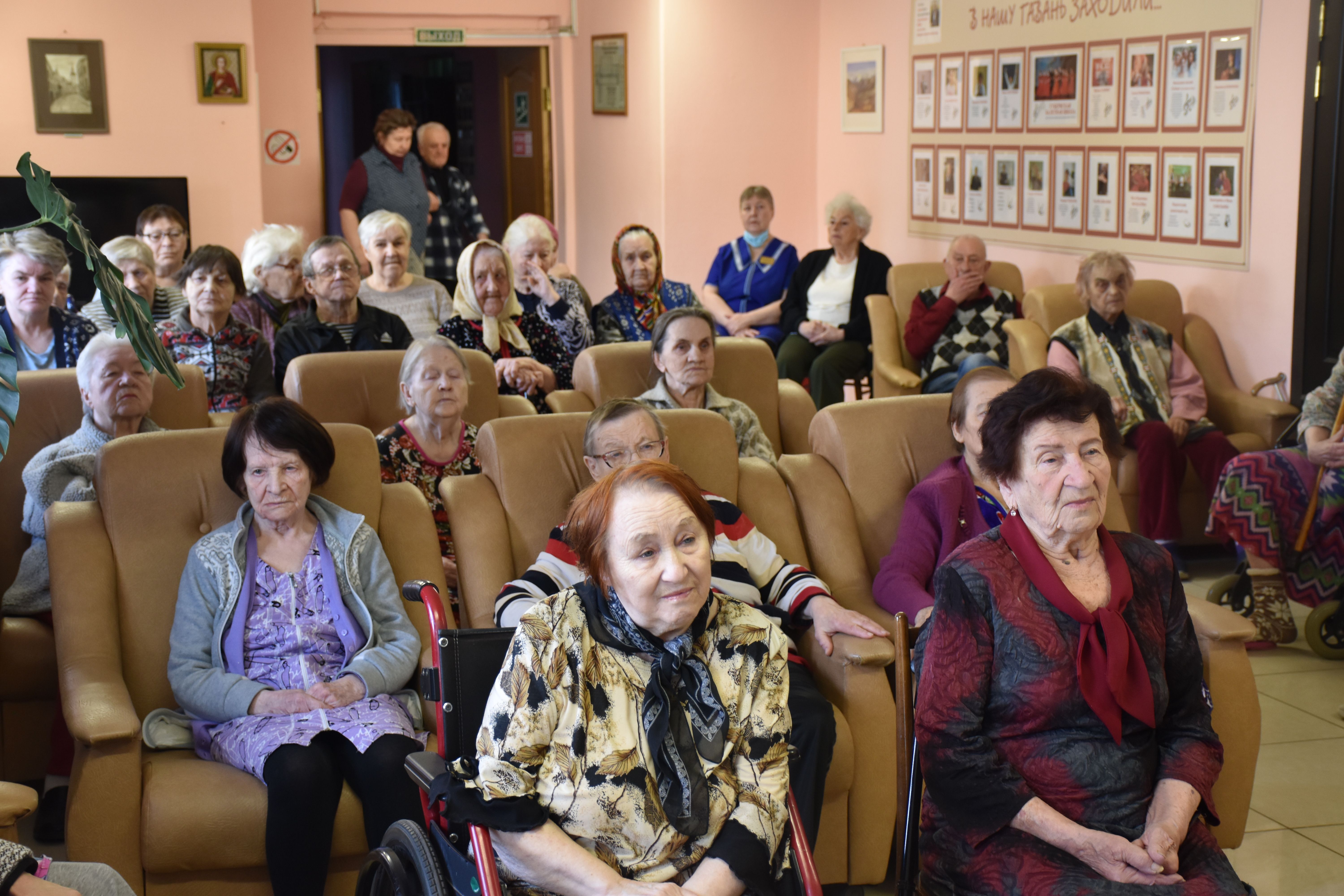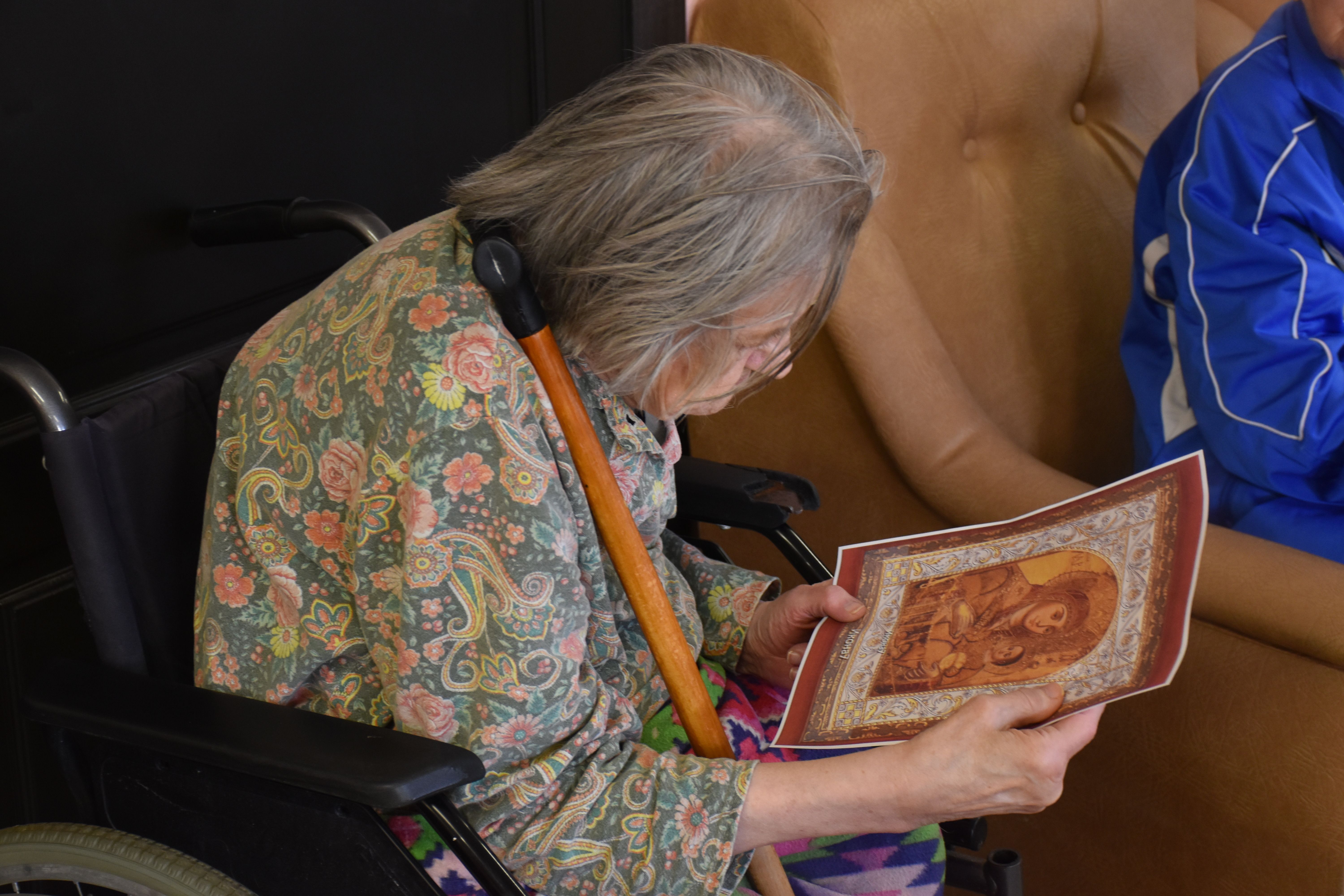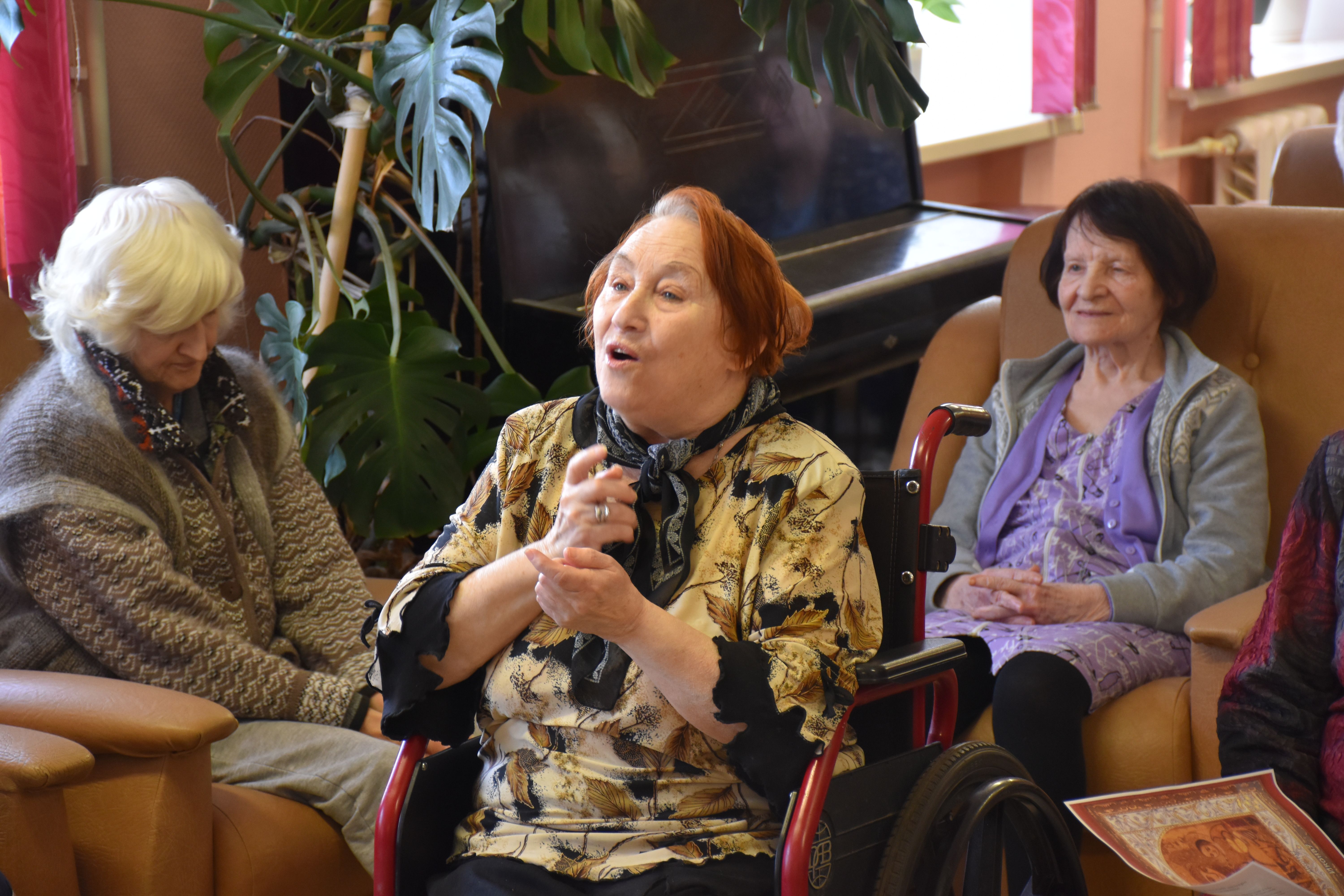 Гостья рассказала собравшимся в театральном фойе учреждения об особенностях иконописи, о том, почему существует так много иконописных изображений Божией Матери, и о том, как и почему она сама стала иконописцем. Гостья показала свои работы (и воочию, и на фотографиях, так как многие из написанных ею 13 икон достаточно большие по размерам). Разговор получился очень светлым, добрым и душеспасительным. Людмила Петровна пришла на встречу не с пустыми руками: каждый из присутствующих получил на память принесённую ею в дар небольшую икону, а культорганизатор центра Зоя Ростиславовна Кольцова дополнила рассказ гостьи несколькими песнями, в числе которых была и песня на стихи протоиерея Андрея Логвинова, которого наши проживающие и наша гостья знают лично. По окончании общей встречи её участники имели возможность лично побеседовать с Людмилой Петровной, задать ей интересующие их вопросы и поблагодарить за столь важный и интересный разговор.