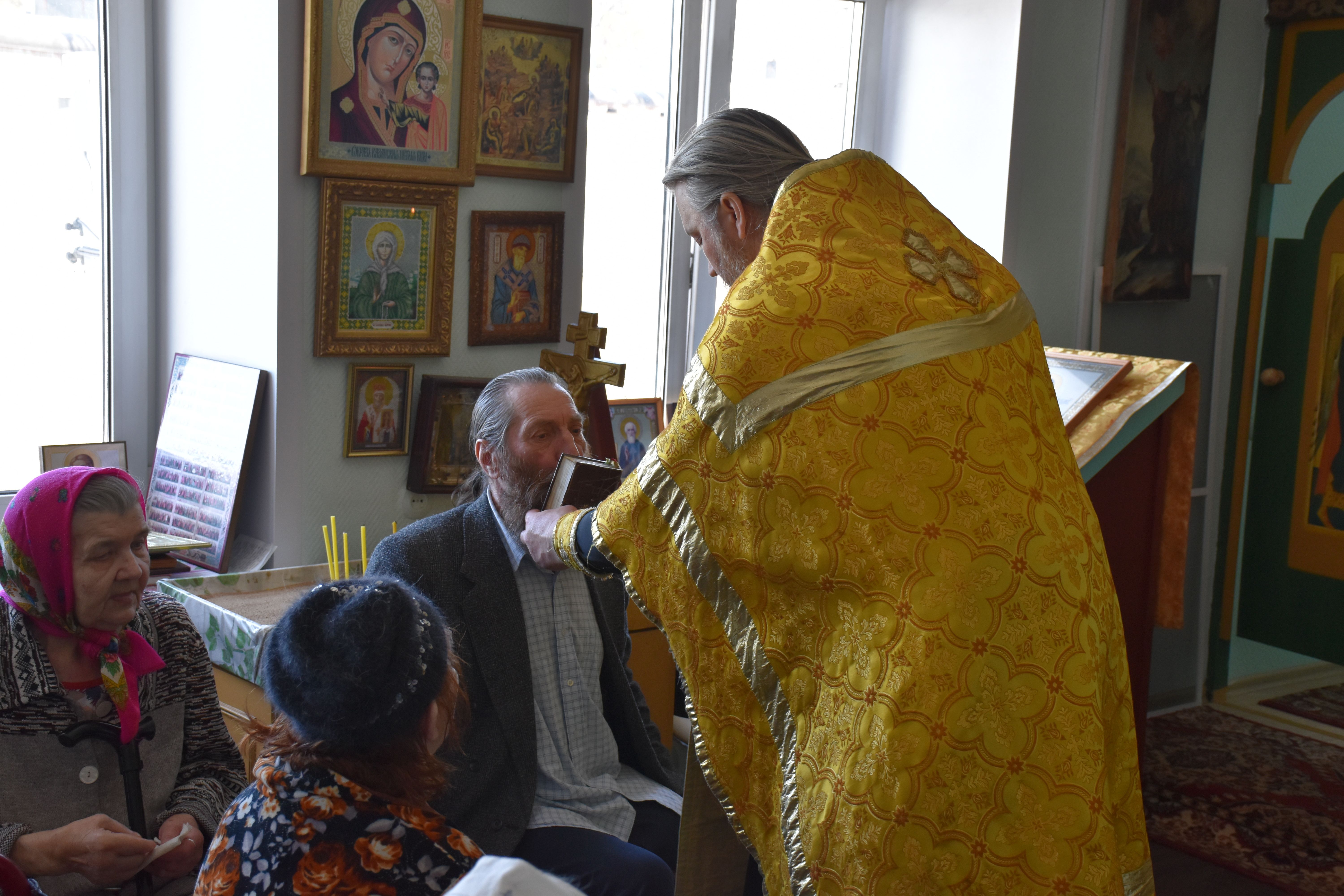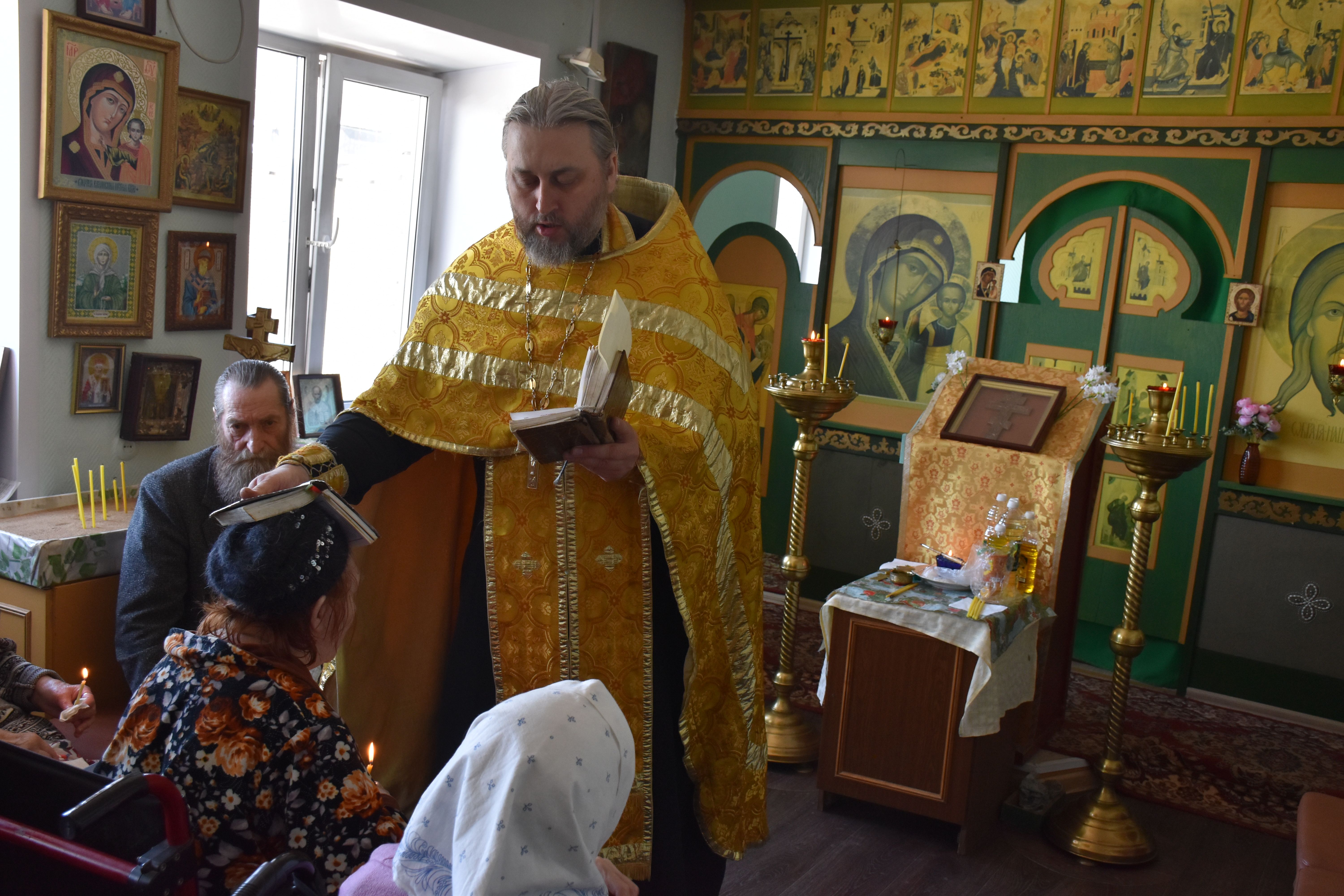 В дни Великого Поста в храме в честь Святого Преподобного Сергия Радонежского Октябрьского геронтологического центра настоятелем иереем Алексием Дроновым было совершено таинство Соборования. В Богослужении приняло участие около двух десятков прихожан, проживающих и сотрудников учреждения.