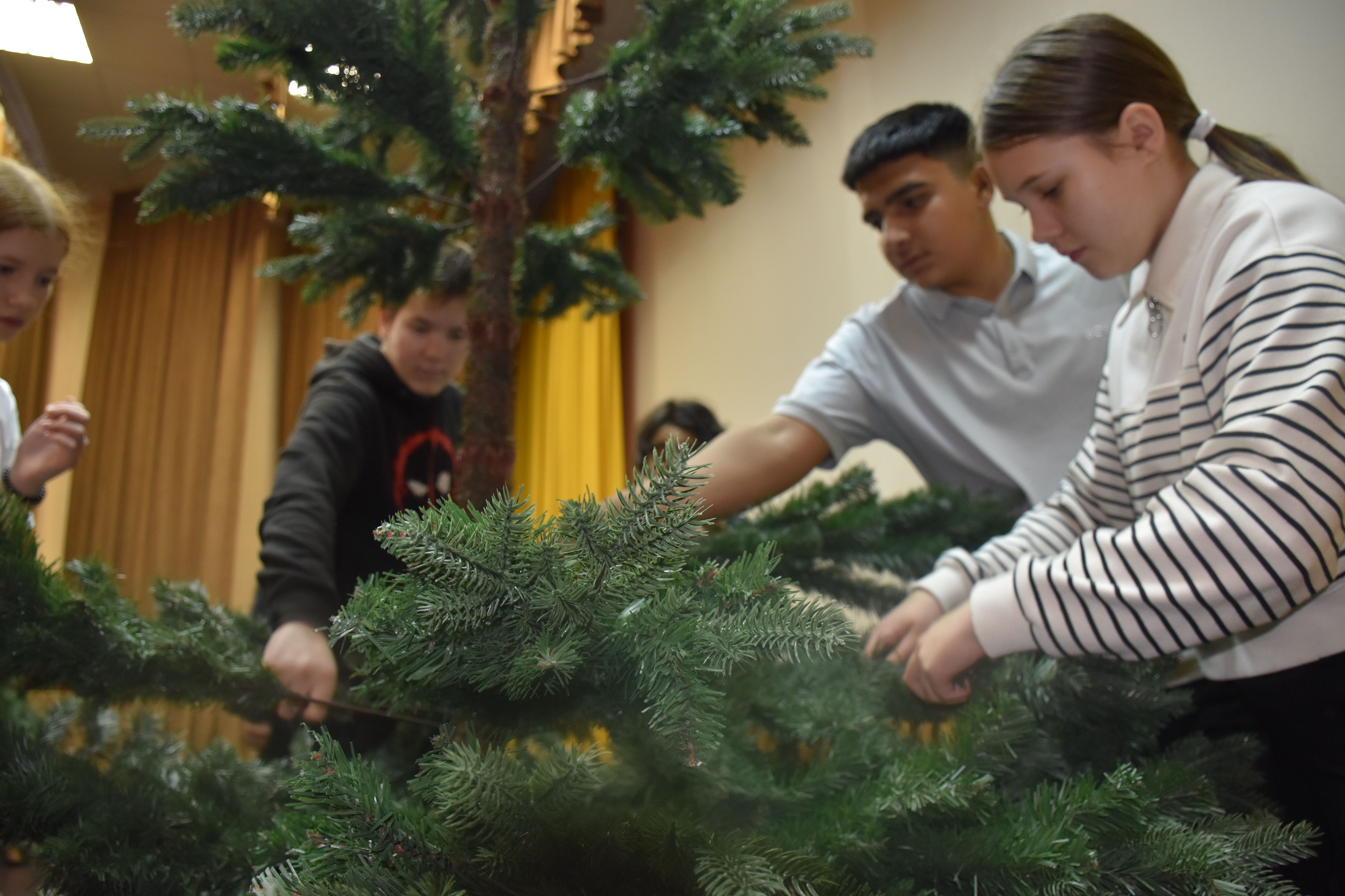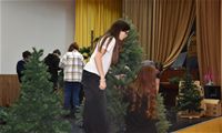Украшением к празднику будут заниматься не спеша, с любовью в течение целых двух декад как проживающие и сотрудники учреждения, так и наши друзья и помощники - юные волонтёры из разных учебных заведений города. Первые - ученики и педагоги 5-й костромской школы - пришли уже сегодня. Благодаря их стараниям начал расти еловый лес в актовом зале, в отделениях и других общих помещениях центра. Искусственные ёлочки совсем скоро обретут свои праздничные наряды, а пока они красуются и радуют нас своей густой зеленью. А вот главную красавицу - большую настоящую елку, которая должна занять почётное место перед входом в главный корпус учреждения - придётся немного подождать. Уже несколько лет подряд живую ель привозят и дарят нам друзья. Надеемся, что и в этом году их бесценный новогодний подарок тоже будет радовать проживающих, сотрудников и всех друзей центра не только своей пышной красотой, но и настоящим еловым ароматом. Сегодня мы открываем серию репортажей, которые будем посвящать подготовке Октябрьского геронтологического центра к встрече Нового 2026 года. Следите за нашими публикациями.